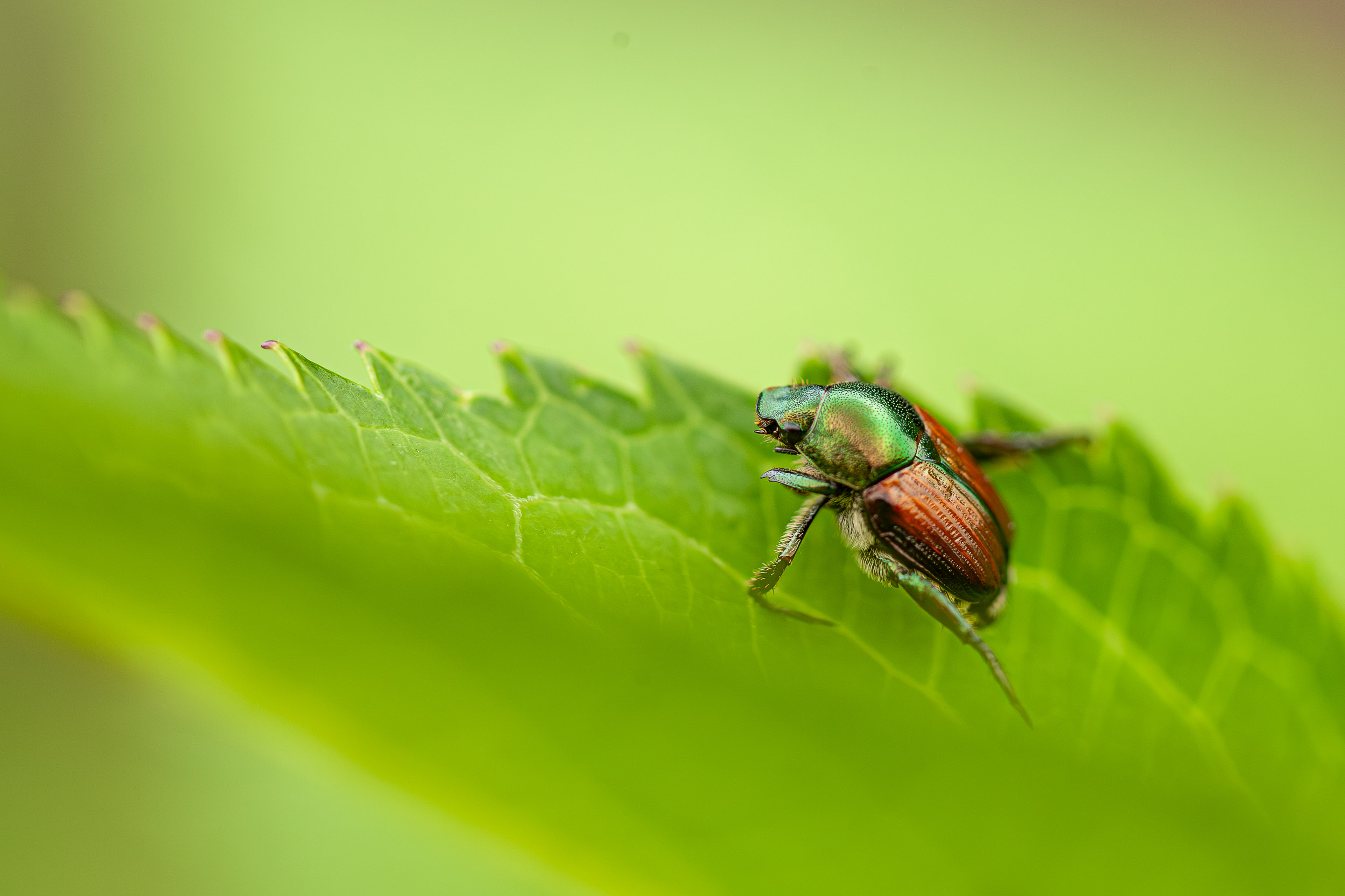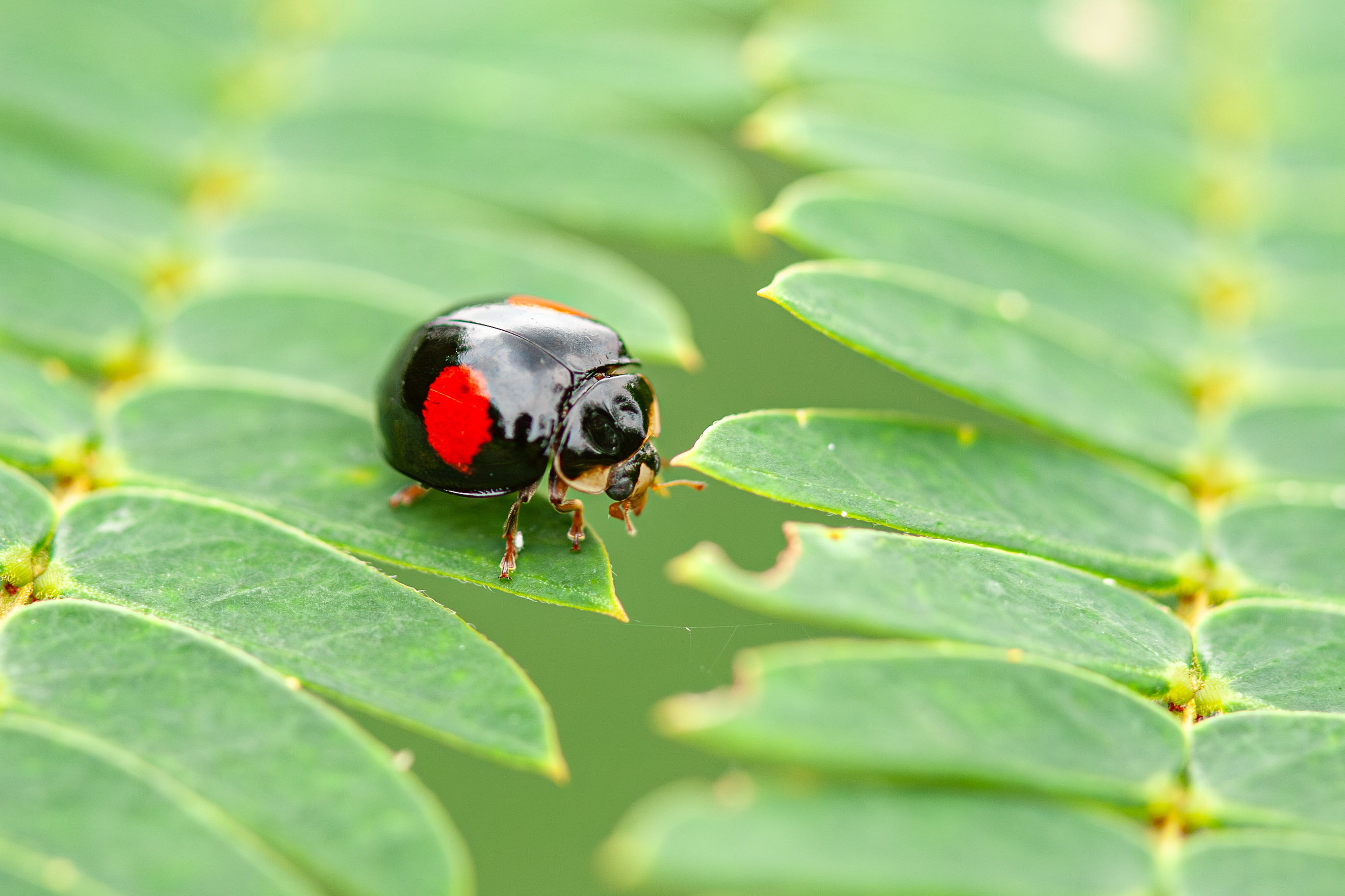 梅雨の晴れ間の谷戸山は蒸し暑く、草むらをようく見るといろいろな小さな虫たちが動き回っています。彼等は、その小さな体を実に大きく、美しく見せてくれる素晴らしい生きものたちです。まだまだ、これからたくさんの種類の生き物たちが野山に満ちてくるでしょう。生命力あふれる夏の草むら、また、覗きにいきますよ(^-^)。(ESO 5D) |