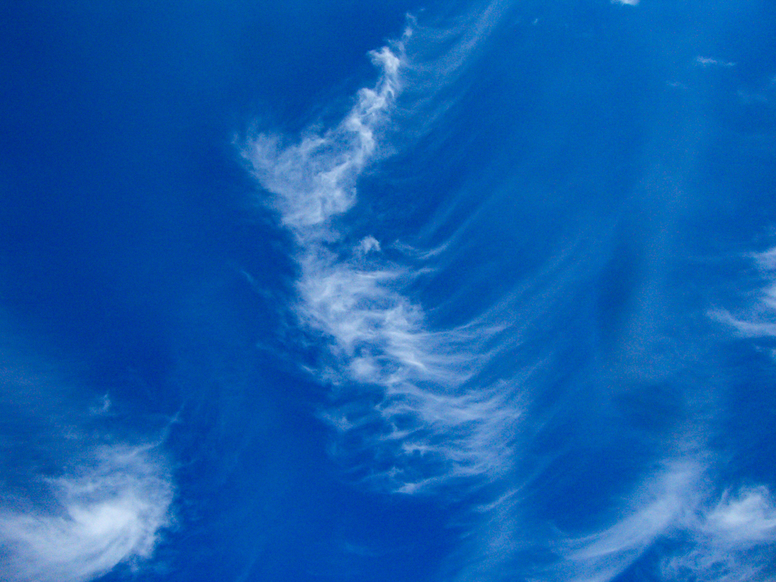 昼間、ふと出がけに空を見上げたら・・・、すじ雲でしょうか?