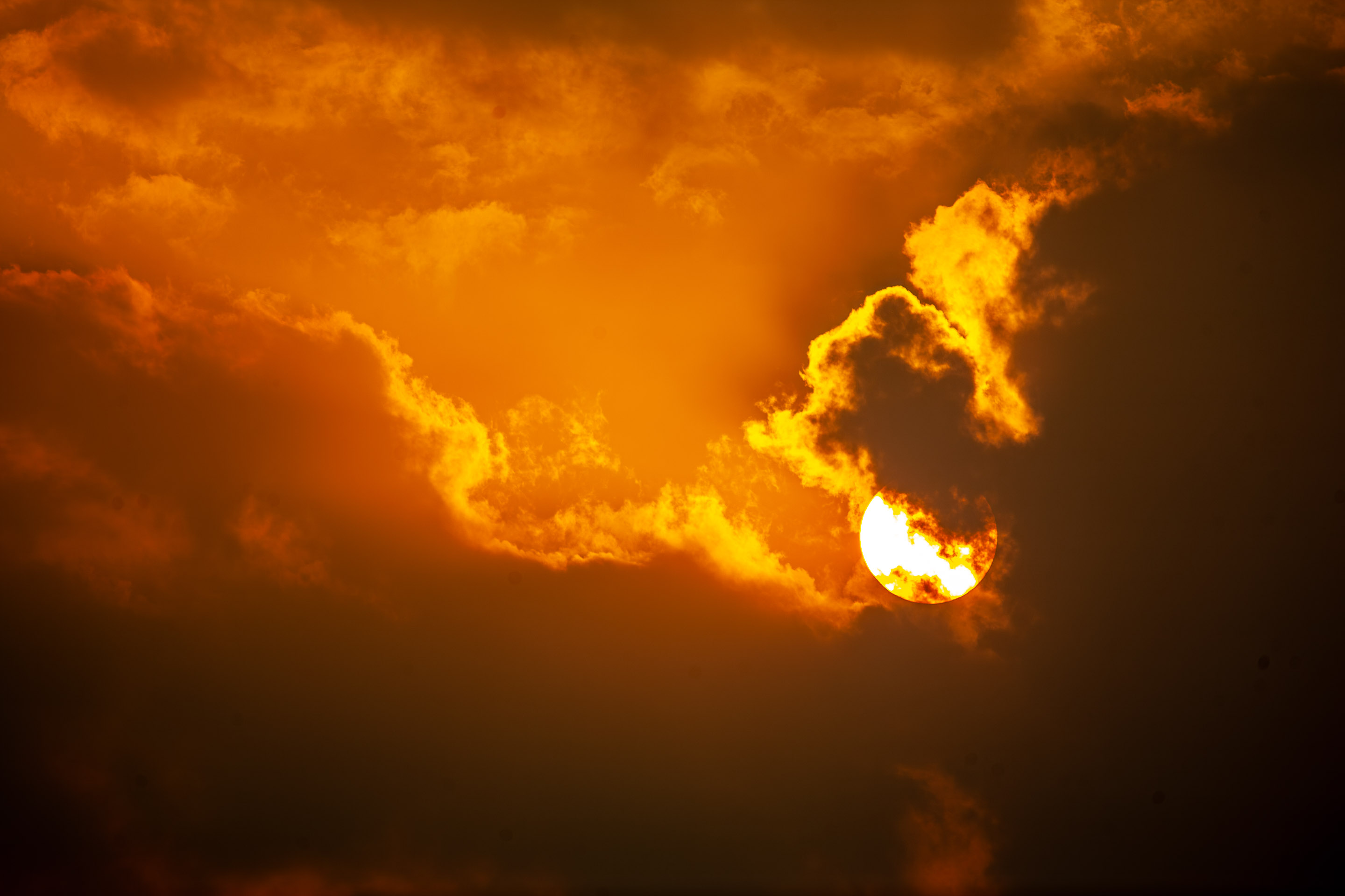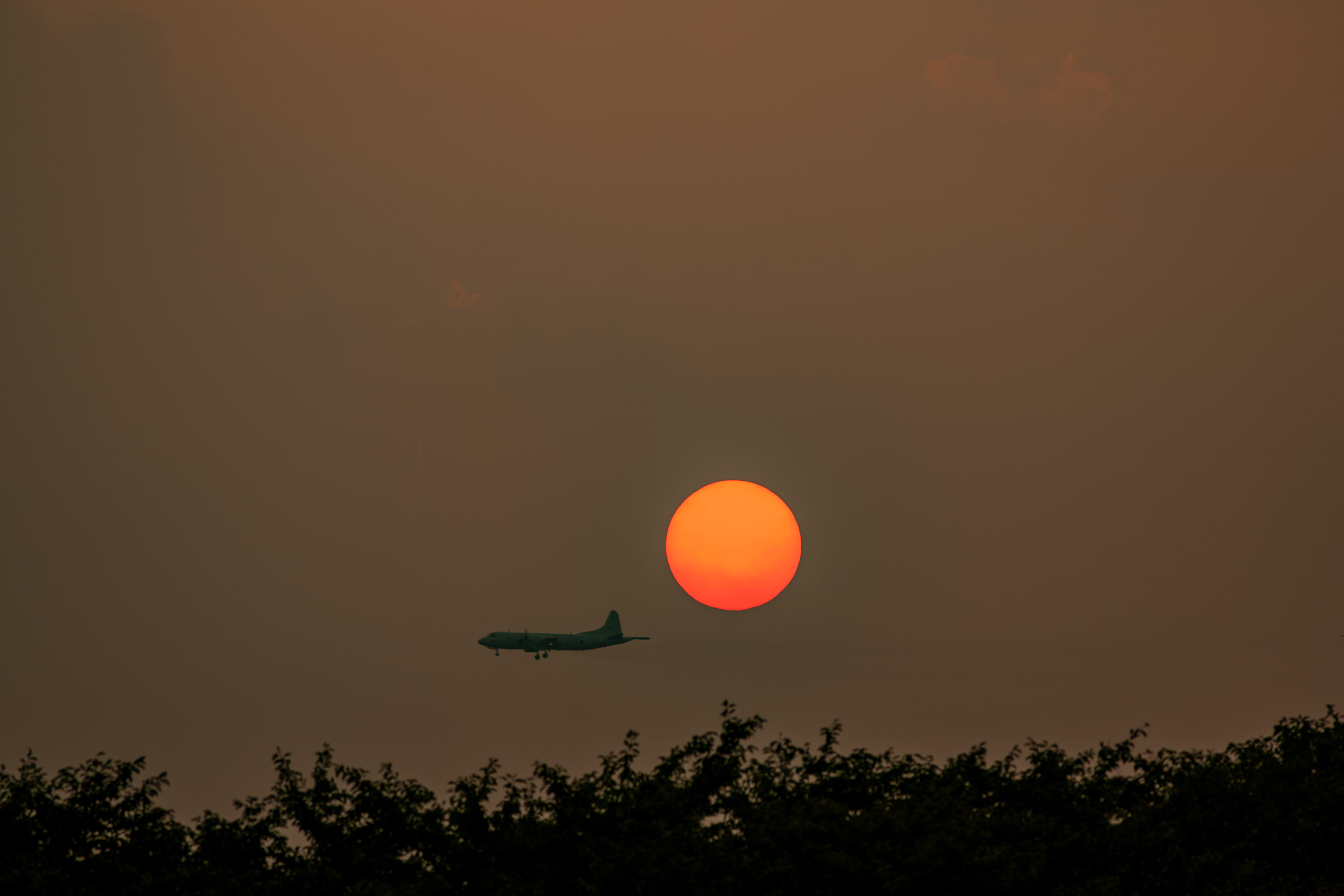 昨日と同じ場所、横浜市上瀬谷の桜並木で知られる海軍道路沿いの広場に夕方来ました。広く空が焼けているのではなく、遠く太陽のまわりだけでしたが、黄金色になっていました。そして、南の空には月がそっとクラゲ(海月)のように浮かんでいるのでした。(EOS 5D)