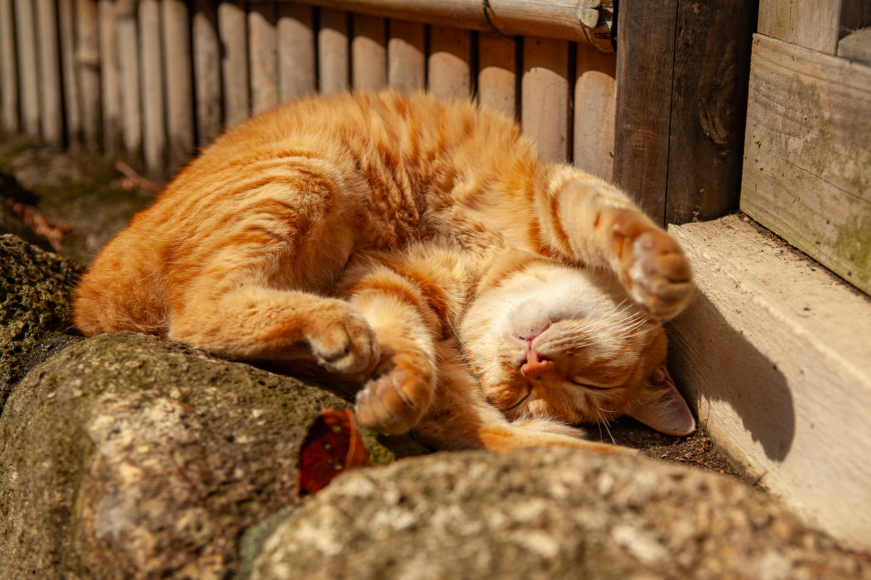島で有名な旅館の入口脇で幸せそうに眠っていた |