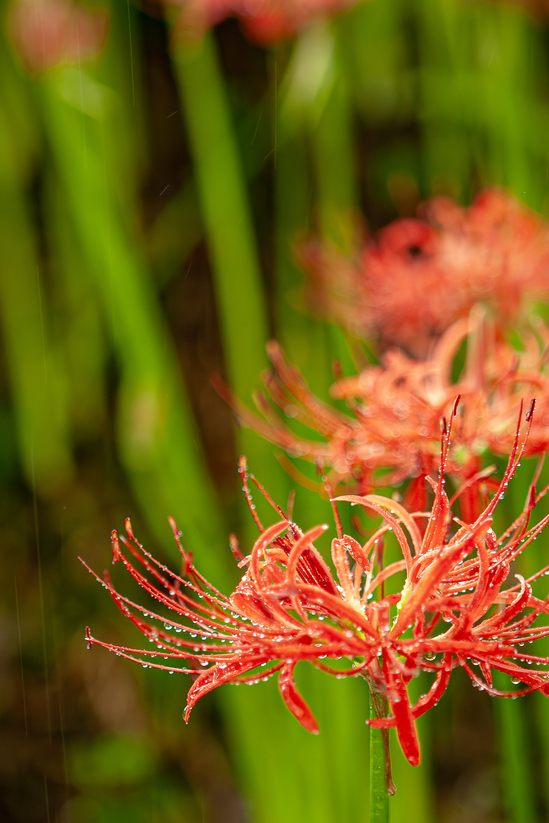 台風13号の影響だったのでしょうか。午前中は、断続的に激しい雨が降っておりました。座間市のちょっとした彼岸花のスポットに行ってみたのですが、雨が最も降っているときで、まともに撮れないうちに退散しました(^^;。