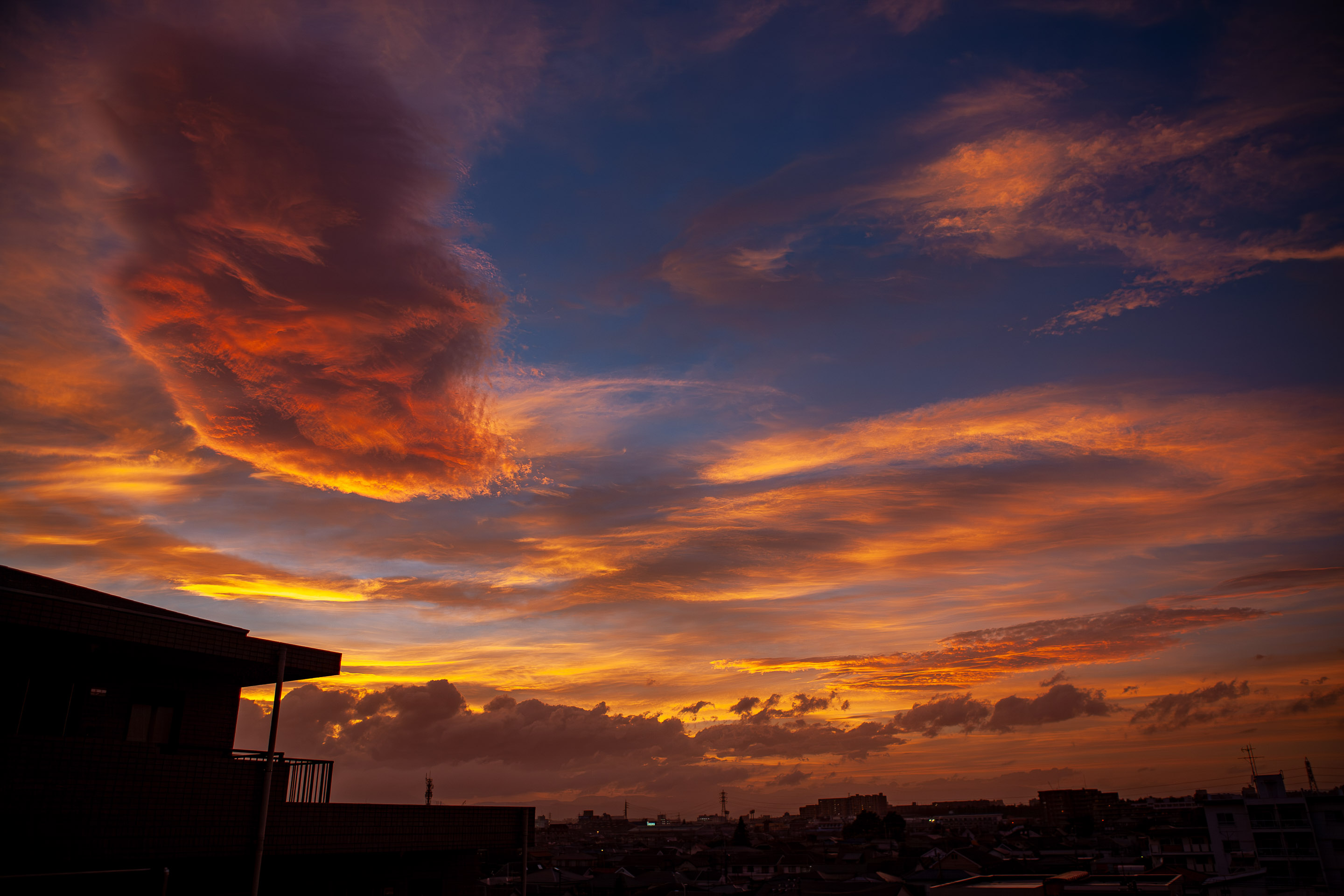 そして夕方、家にいたのですが、きれいな夕焼けになりましたね。これだけ赤くなるのは久しぶりです。(EOS 5D)