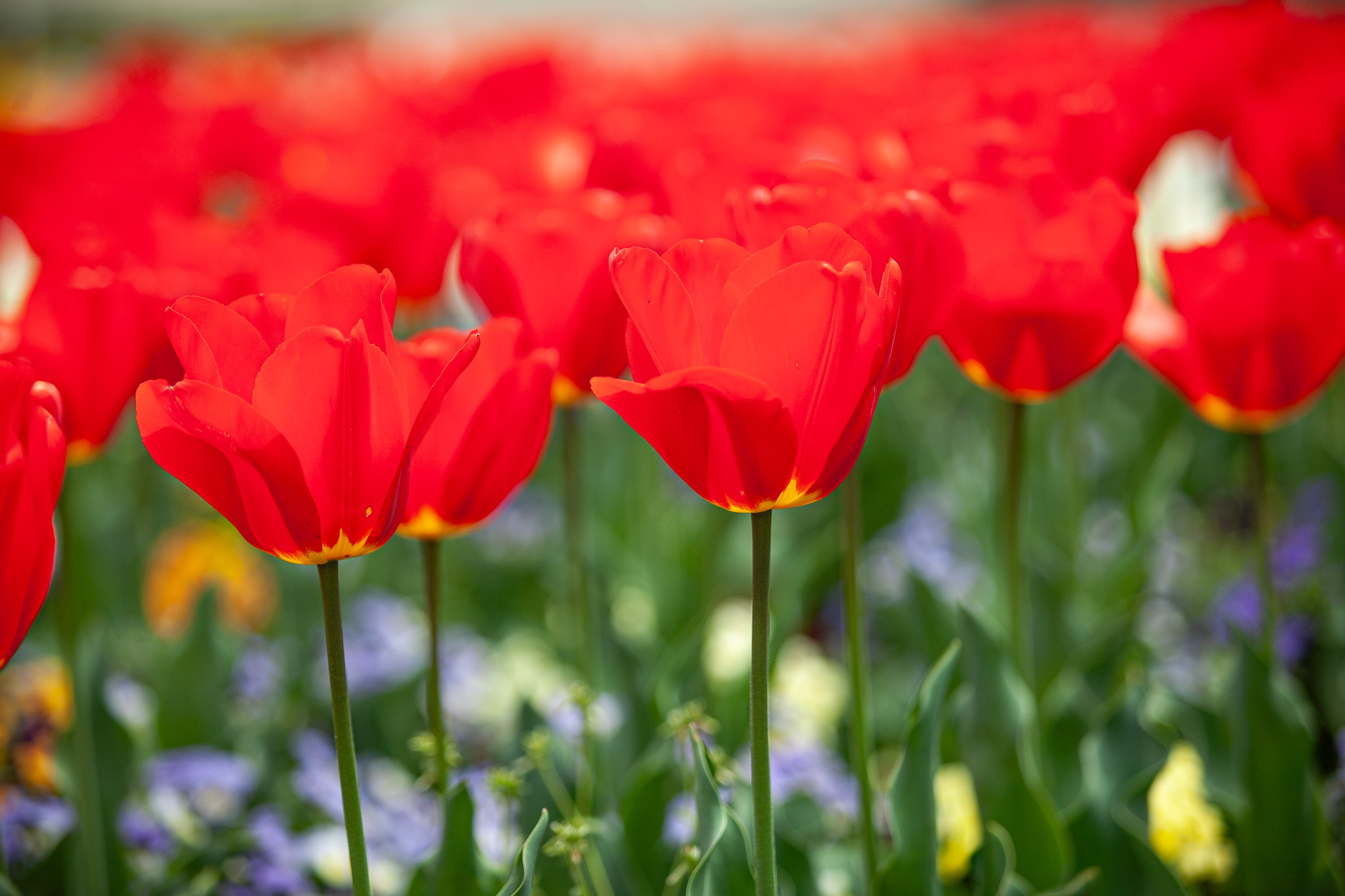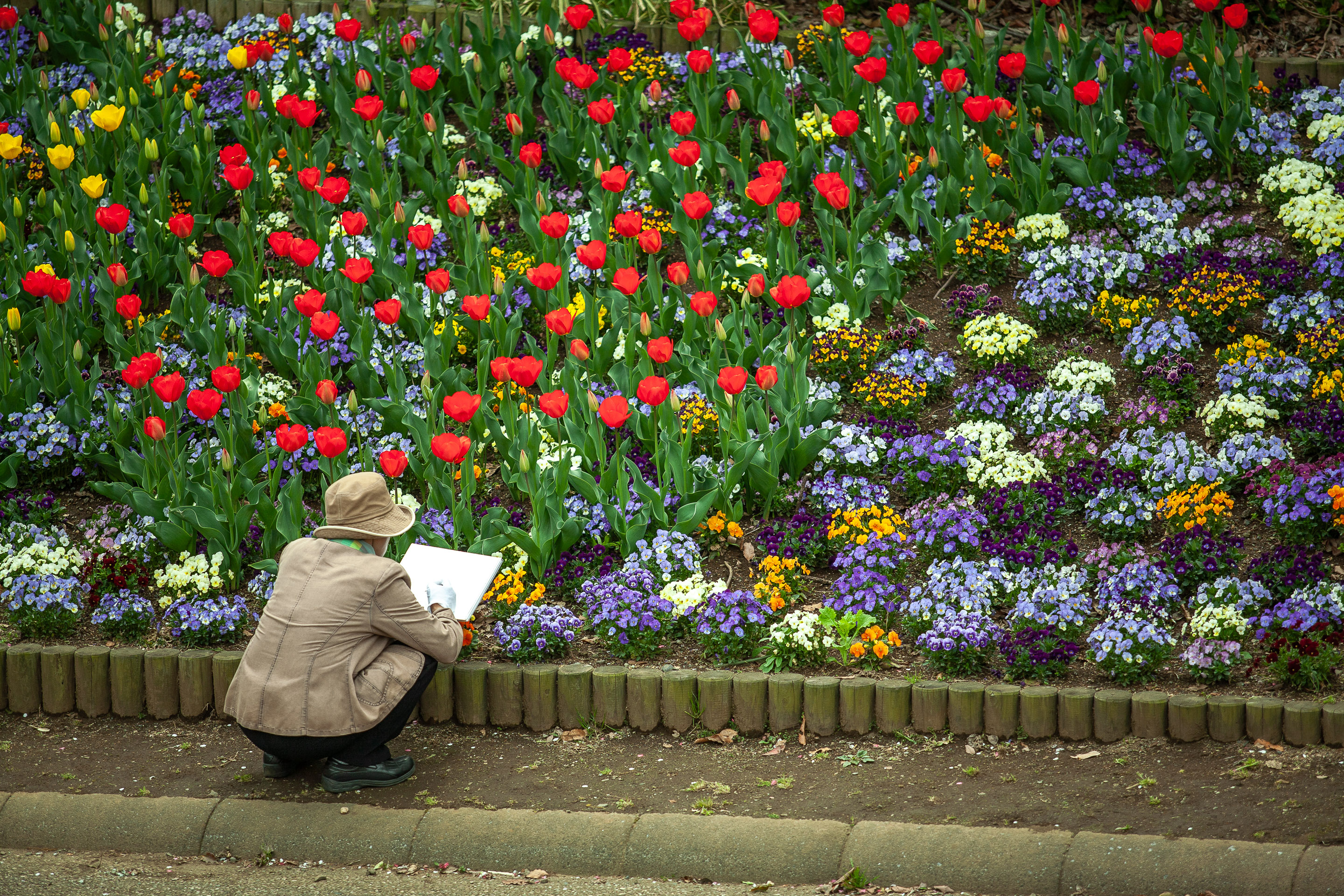今はチューリップが咲いているとのことで、早速行ってきました。赤い花のチューリップがやはり強い色彩を放っており、他の色を圧倒する感じですね。久々の意識しての撮影でしたが、説明的なものばかりでした。(EOS