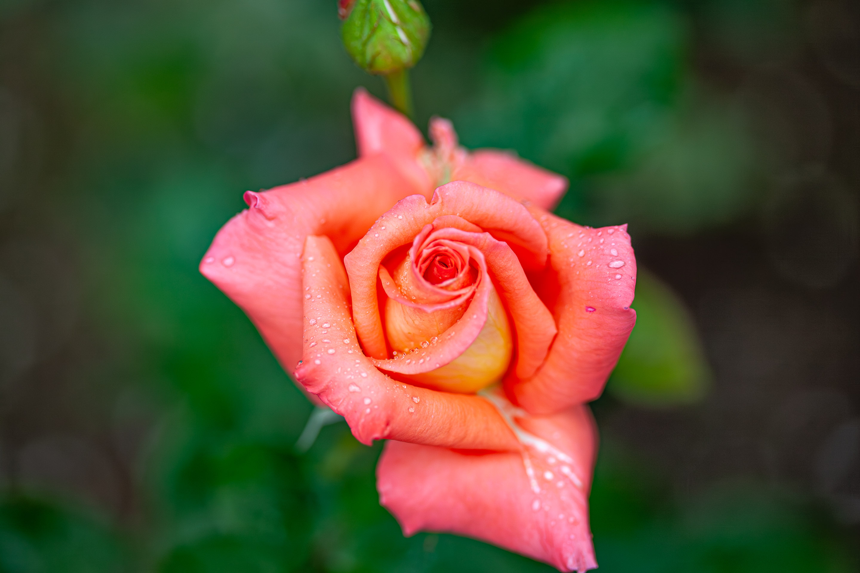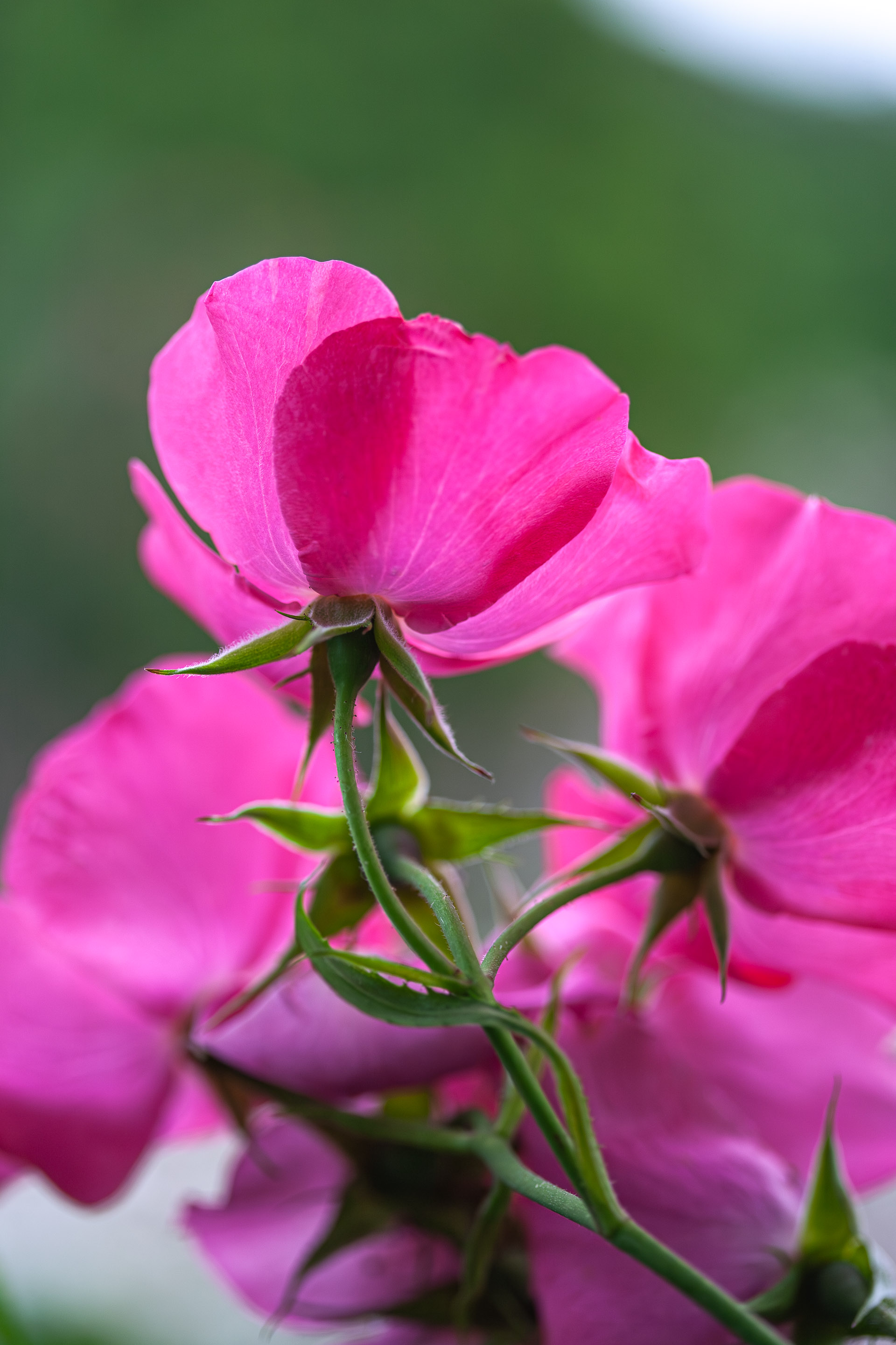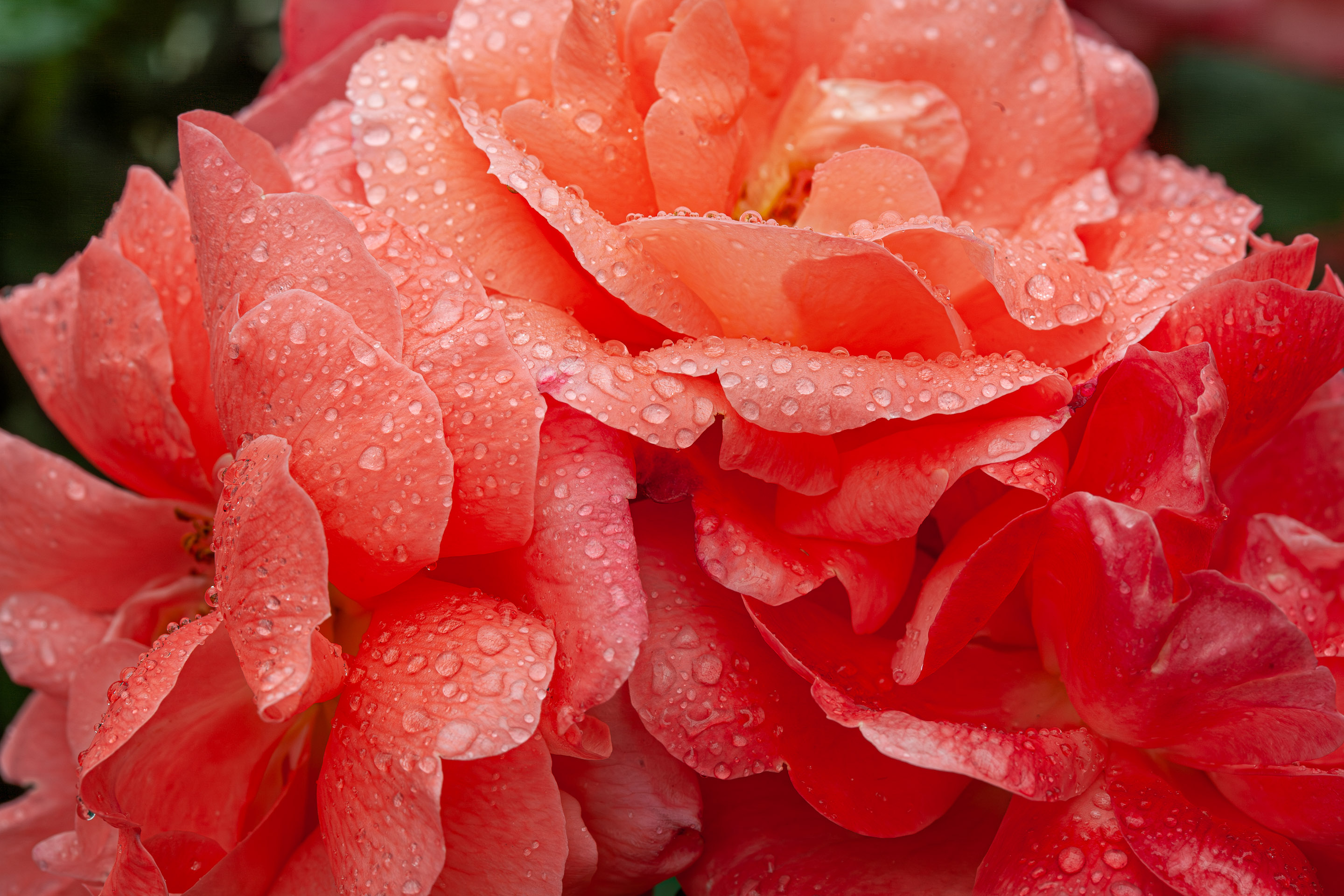 花は今日のようなうす曇りがちょうどよい光線ぐあいで、自然なグラデーションを得ることができますね。昼近くになると雨が降ってきましたが、止むときもあり、水滴をはじいた花びらの様子も撮ることができて、なかなか良かったです。(EOS