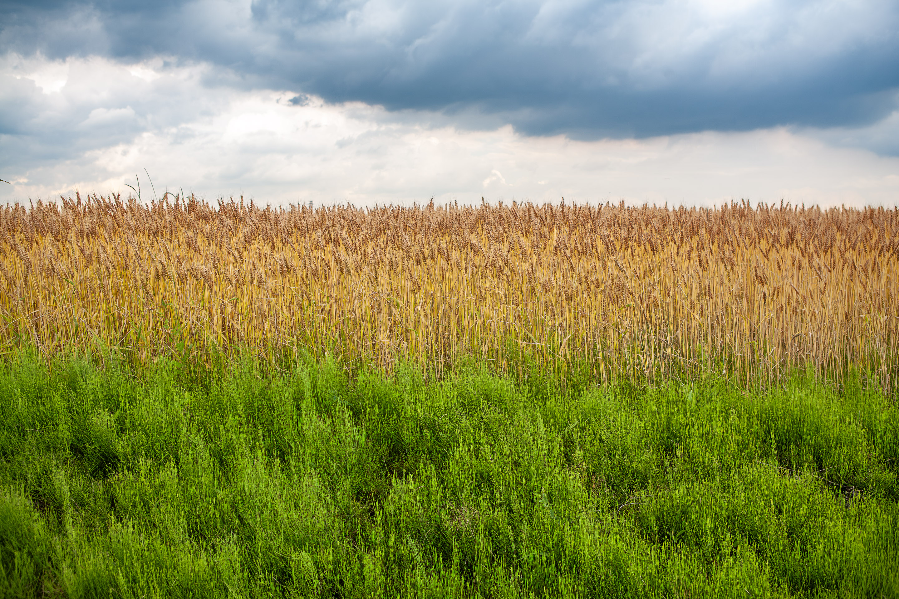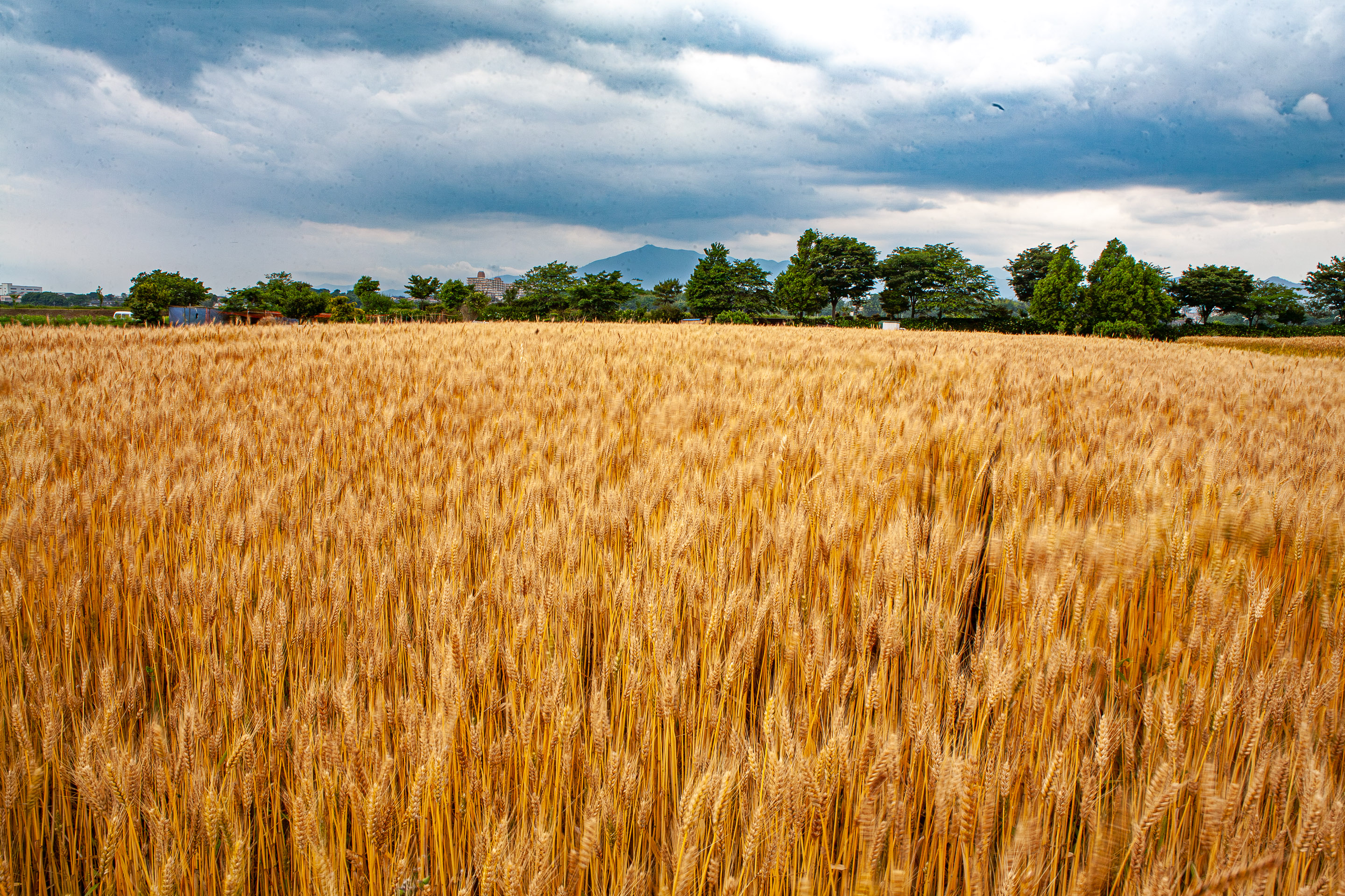 田んぼは、四月下旬のレンゲソウからすでに水が入り、一部の田には苗も植えられ、張られた水に遠くの景色を落としています。そして、五月の初めにはまだ青かった麦も黄金色になり、早くも収穫の時期が迫っているようで、麦の穂たちが風に吹かれ、ザワワと揺れているのでした。(^-^) まもなく梅雨になるのでしょうか。(EOS