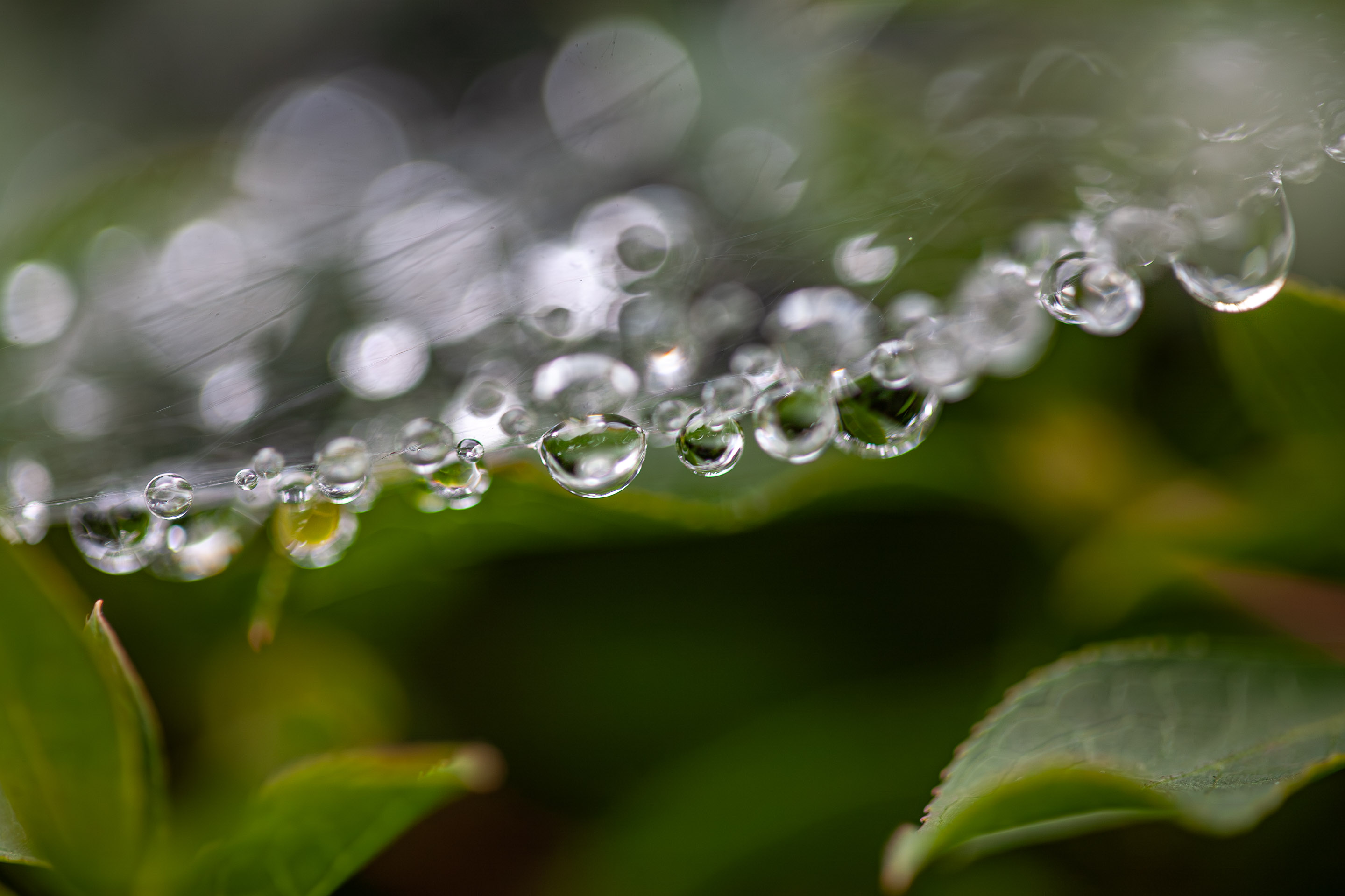 ハスとは全然関係なく、公園内をちょっと歩いたとき、蜘蛛の巣についた水玉が目に付いたので、撮ってみました。ときどき撮りますが、水玉は美しいですね。(EOS
