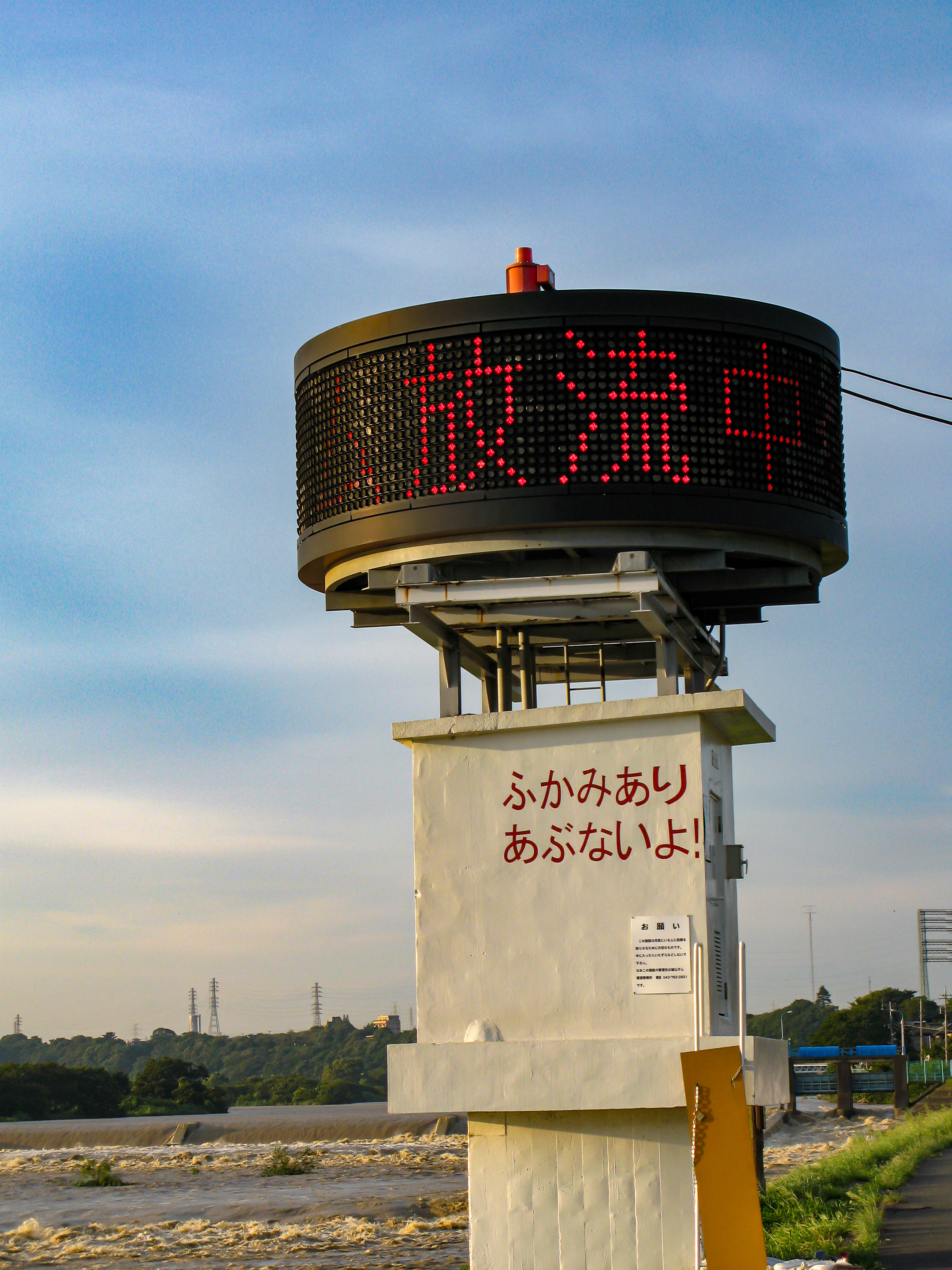 そして、川(相模川)は上流の城山湖ダムからの放流もあり、ふだんの穏やか姿とは異なり、濁流となり川幅いっぱいに広がり、荒々しい様子を見せていました。段差のある堰になっているところでは、滝壺のように飛び散る水しぶきともの凄い音を立てて、荒れ狂う川のさまを目の当たりにしました。