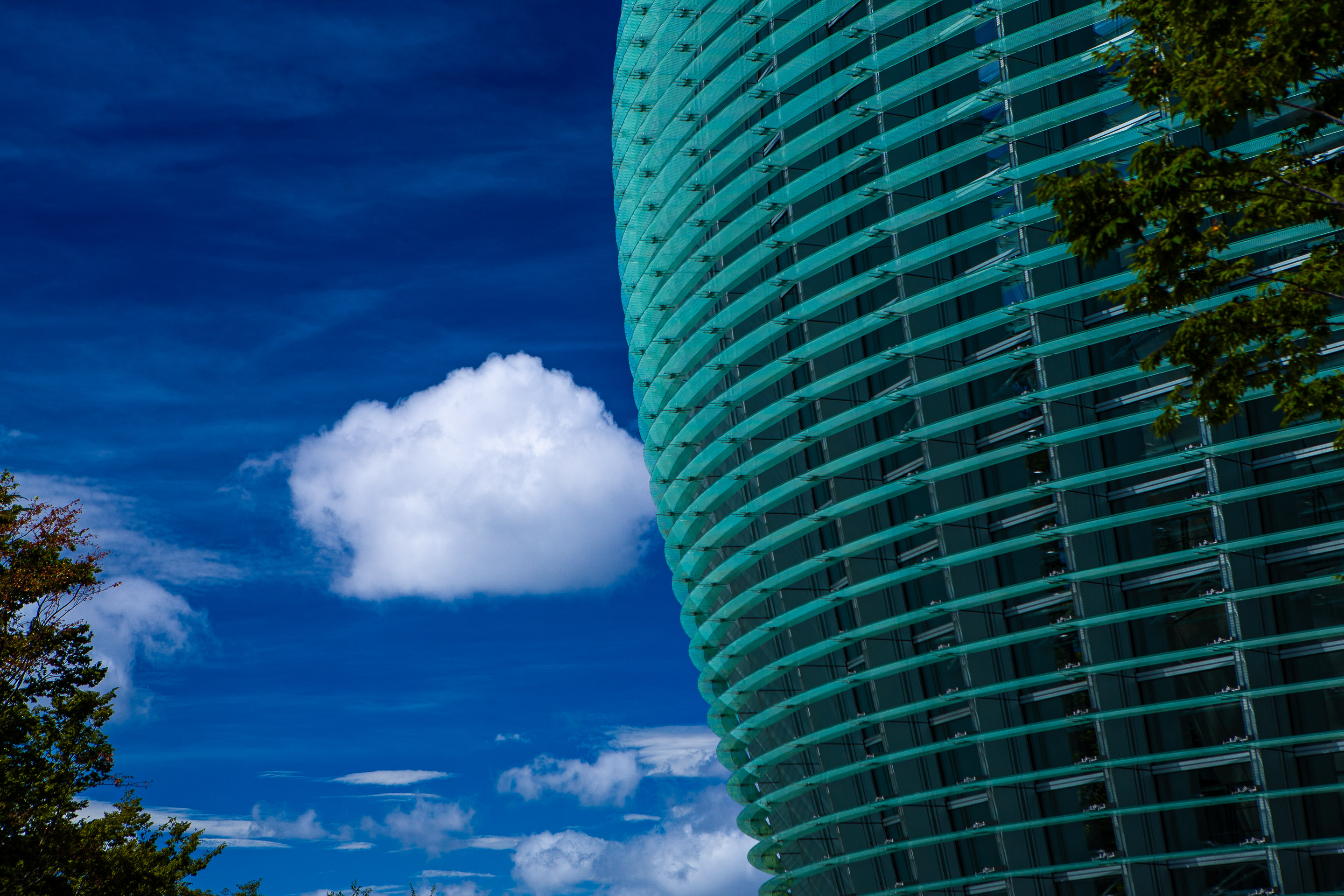 今日はよく晴れて、ほどよく雲も出ていたので、青いバックによく映えた感じで撮影できました。15mmの魚眼を主体にしましたが、そうでないと全体像が把握できないのですね。でも、もともとが波を打っているので、これを魚眼でデフォルメするとわけがわからなくなります(^^ゞ。