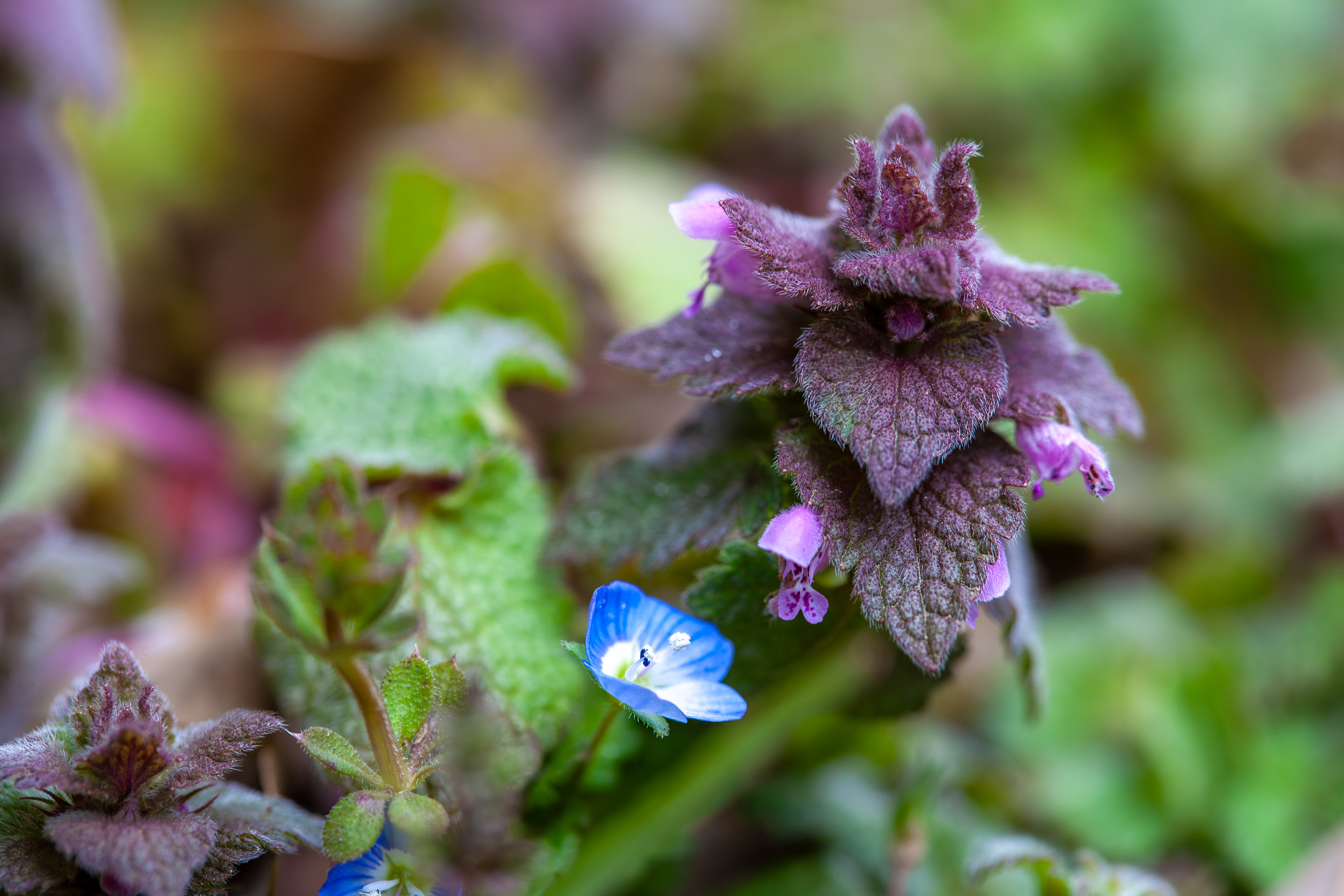 帰りに、喧騒の場所とはほど遠いところに行ってみたくなり、いつもの座間市にある谷戸山公園に寄りました。ヒメオドリコソウとオオイヌノフグリが可憐に咲いていました。少し、ほっとしました。(EOS 5D) |