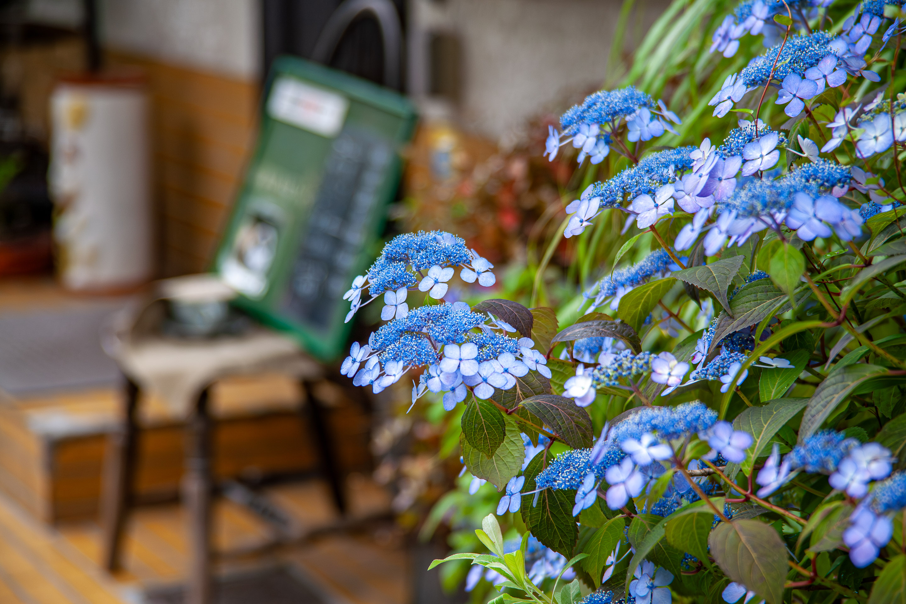 成就院から出たところにガクアジサイの咲くレストランがありました |