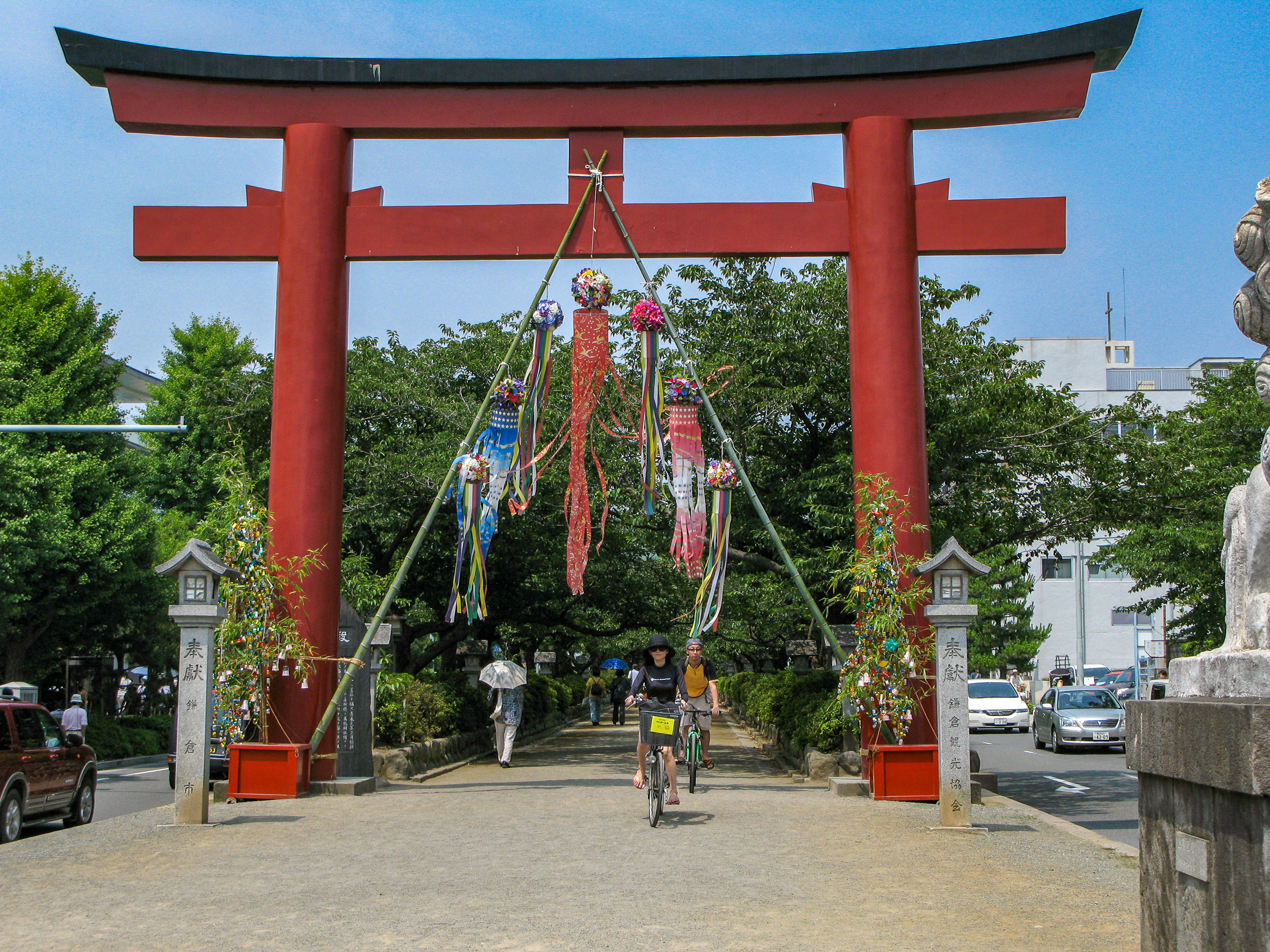 段葛の二の鳥居には七夕飾りが |