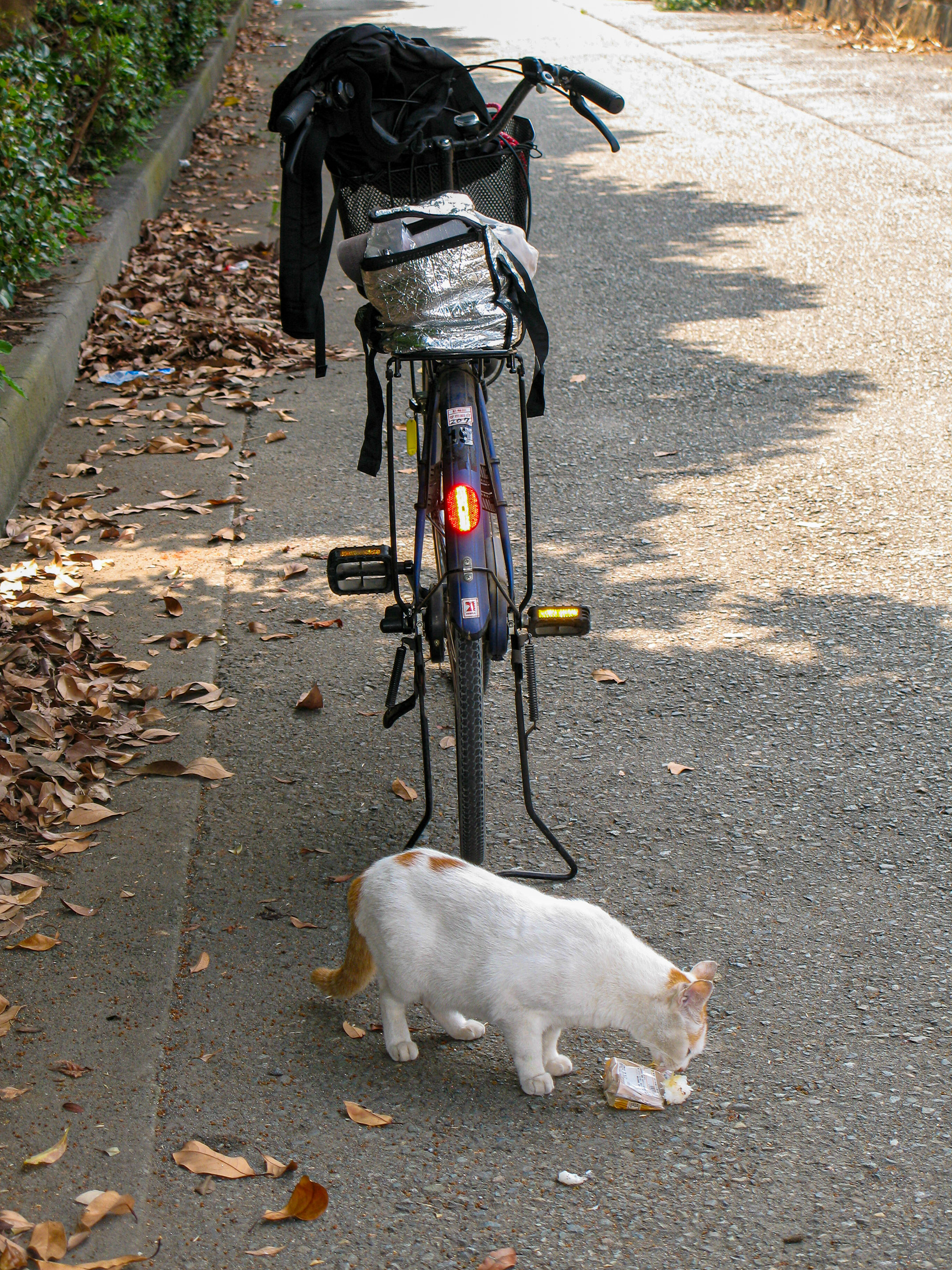 30km走ってきました 昼食のおにぎりを日陰で食べていると 野良猫がやってきて、ご飯くれというので 少し分けてあげました |