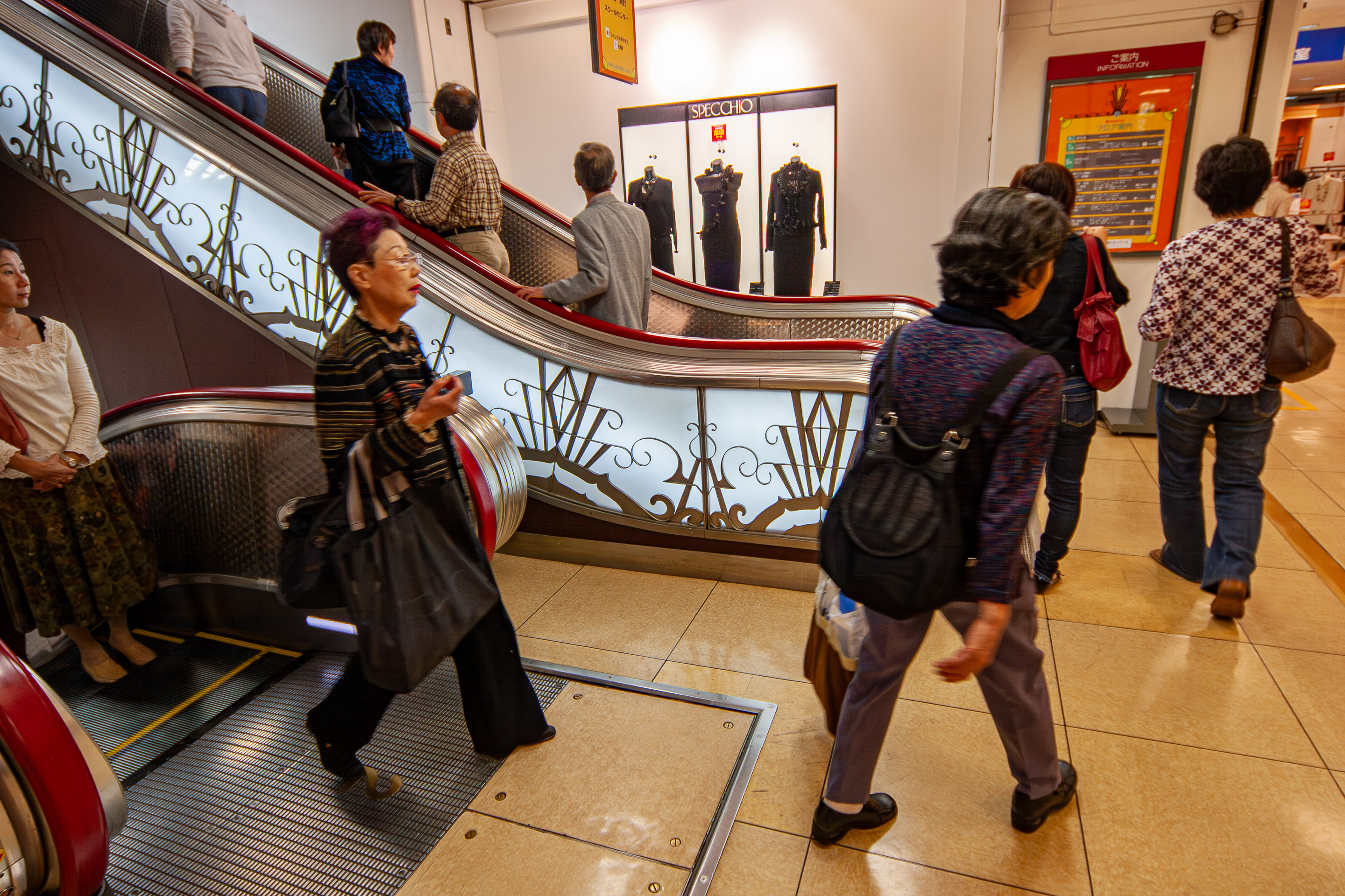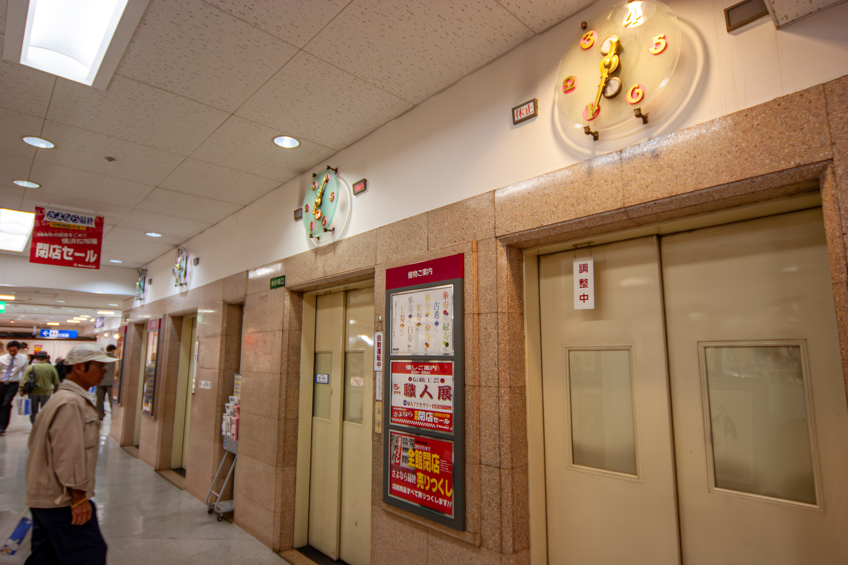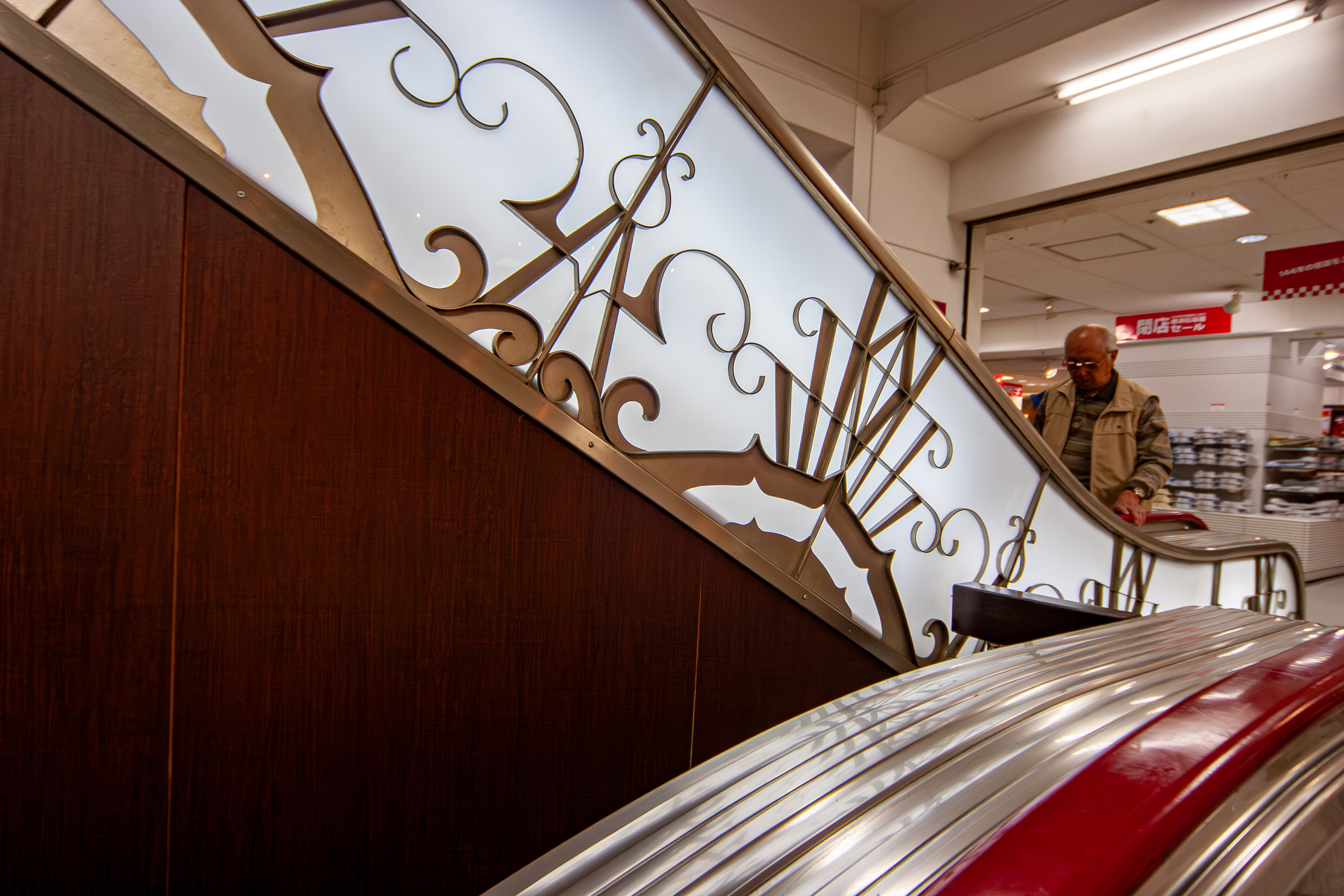 この横浜松坂屋の閉店に伴い、閉店セールはもちろんのこと、店内を撮影できることになったのです。昭和9年に改築された建物は、横浜で唯一戦前から残るデパート建築とされていて、市の歴史的建造物にも認定されており、アール・デコ調の直線や曲線でデザインされた装飾は、なかなか興味を惹かれます。普段デパート内をカメラでバシャバシャ撮るなんてことは不可能なので、これはいい機会と思い、行ってきました(^.^)。ま、こういうイベント企画に乗るのもたまにはいいかな、と。(EOS