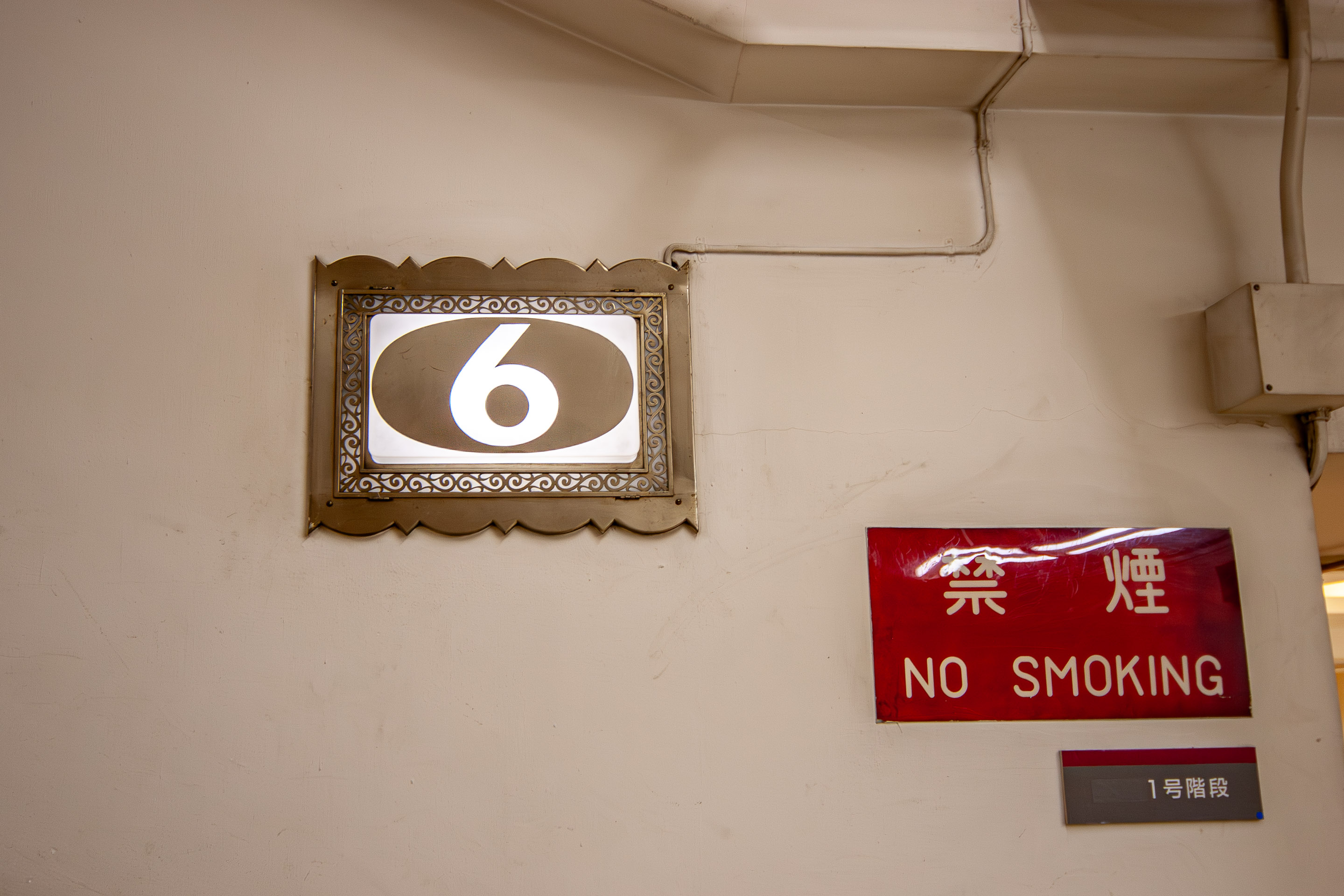 「禁煙」の表示や壁を這わせる配線・配管などレトロを感じます