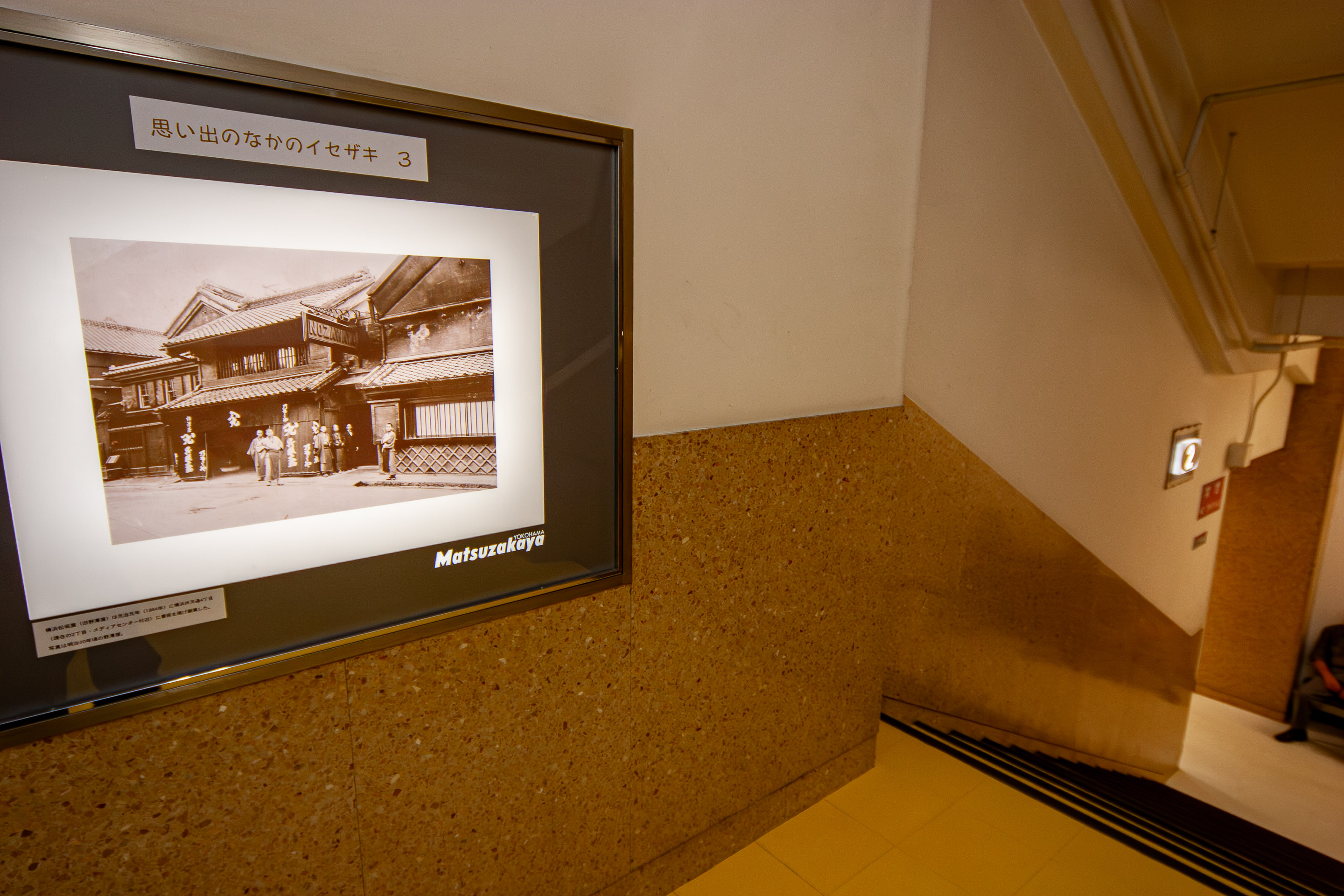 階段の踊り場には、階ごとに伊勢佐木町の昔の写真を掲示してあります