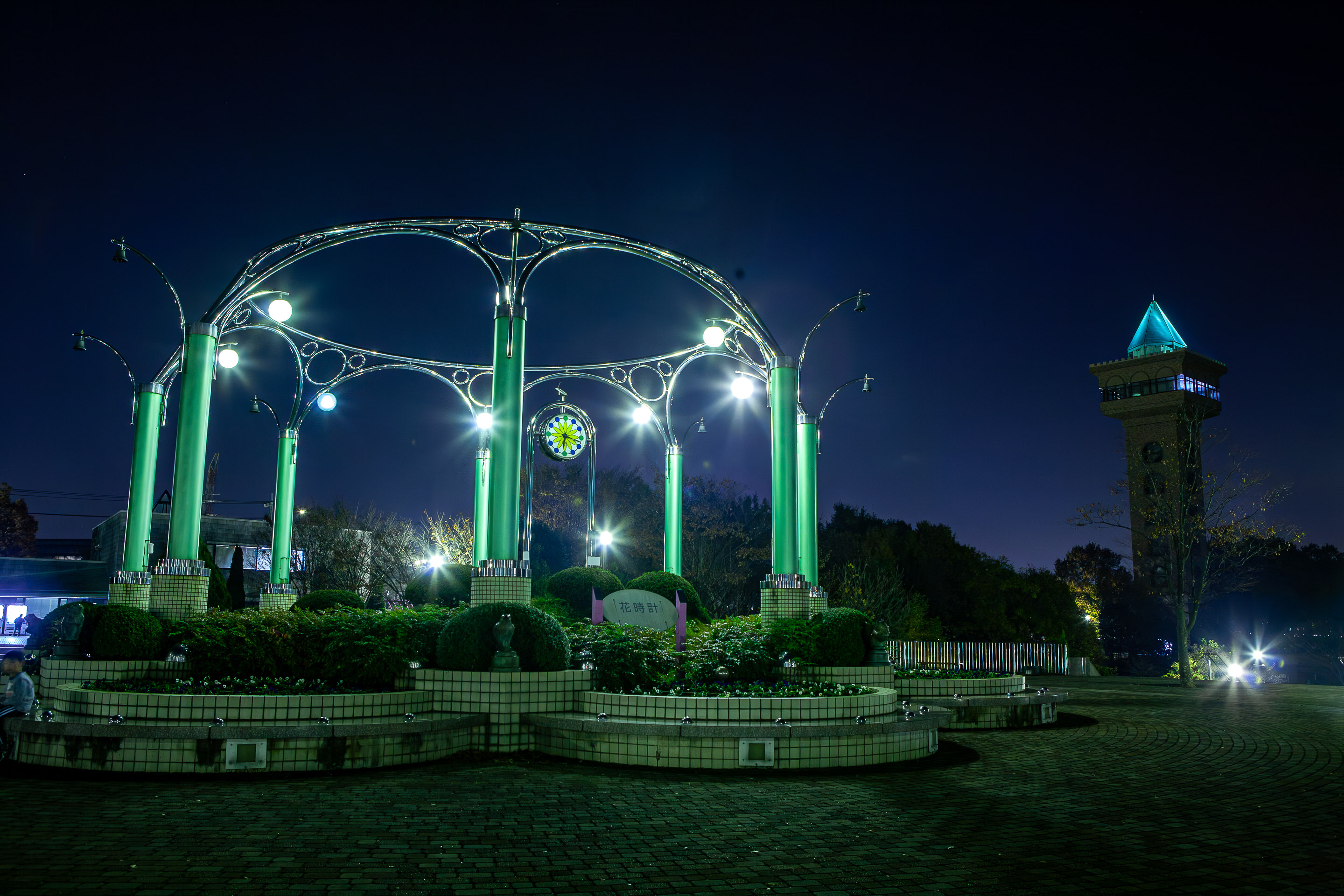 花時計と遠くにグリーンタワーも見える