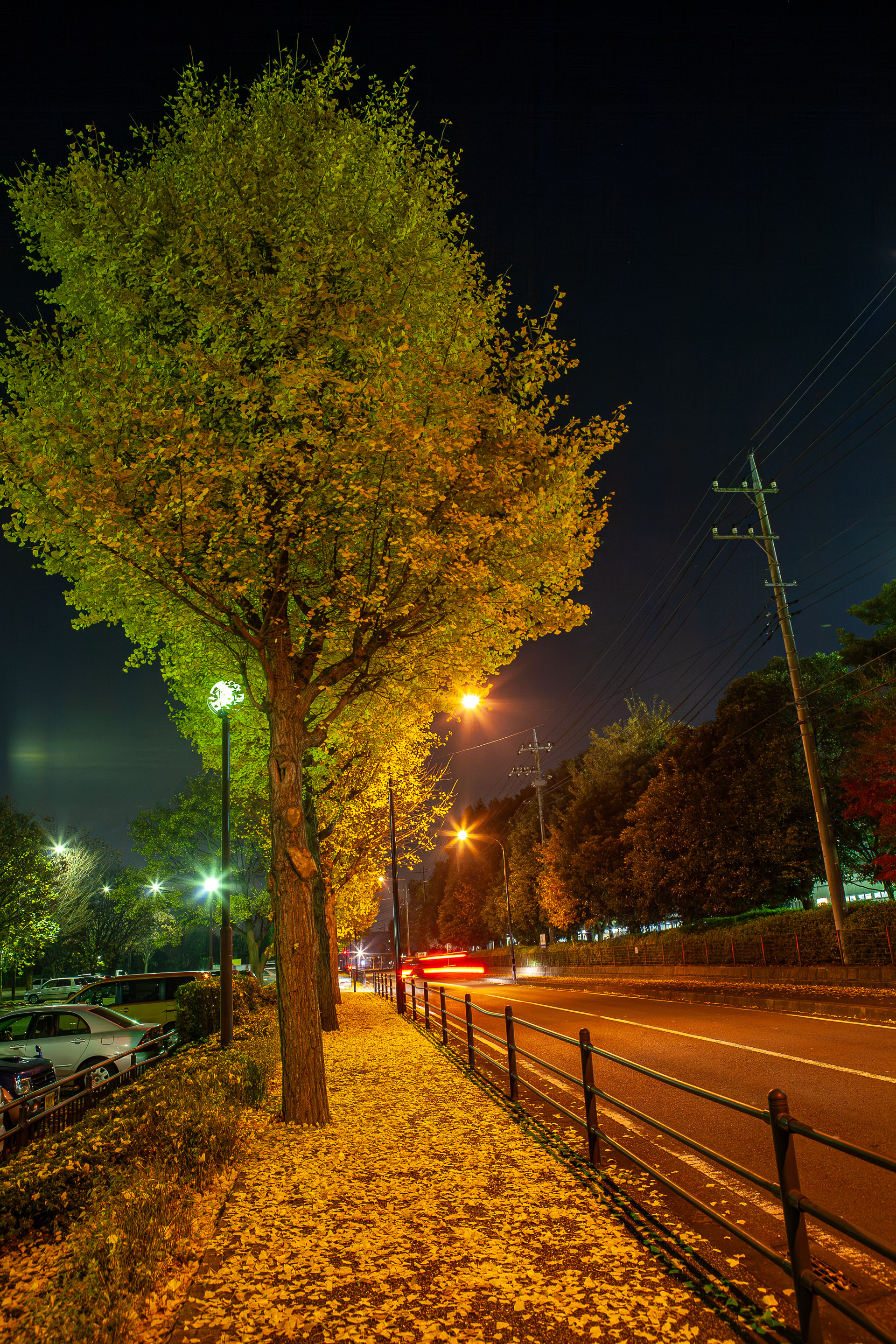 駐車場脇の歩道はイチョウが落葉していた