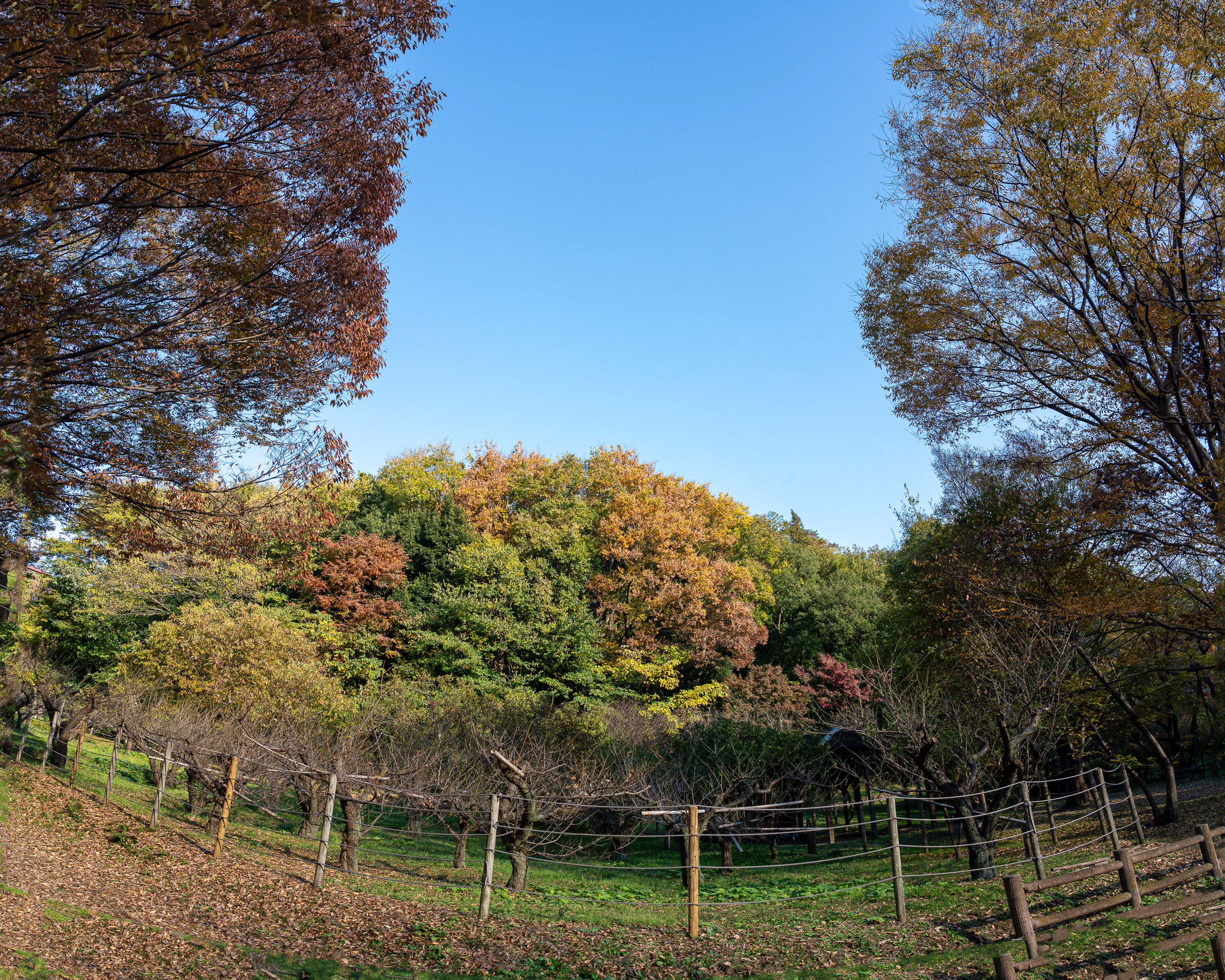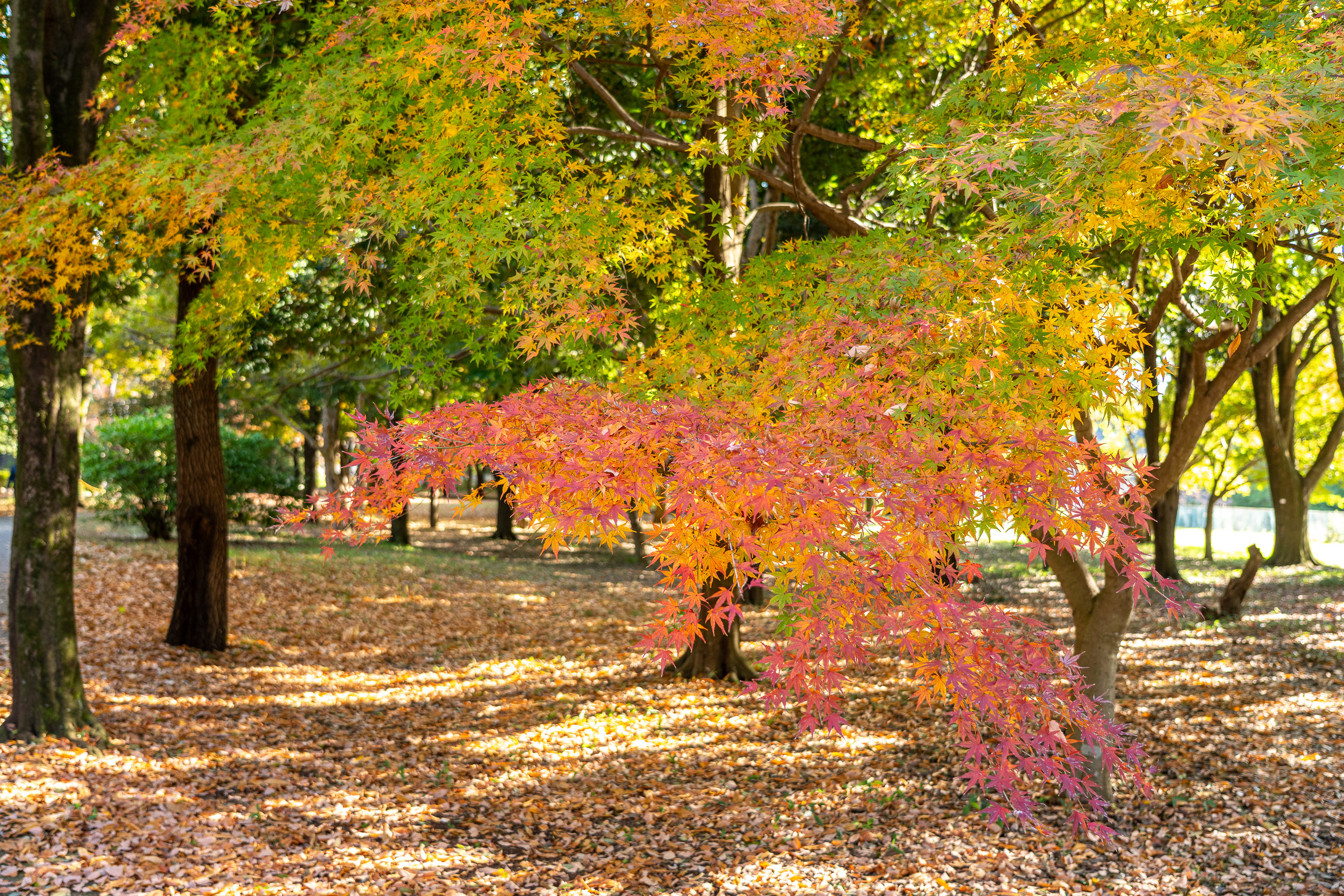 さて、地元のいつもの公園では紅葉がそれなりに進んでいるようだ。モミジ類の多くは、赤い葉と緑の葉が混在している。まだ青い(緑の)ままのモミジもかなりある。しかし、森は晩秋から確実に冬になりつつあり、この先2週間程度で全山紅葉となるかもしれない。もう1,2回は紅葉を愛でておきたい。(SONY