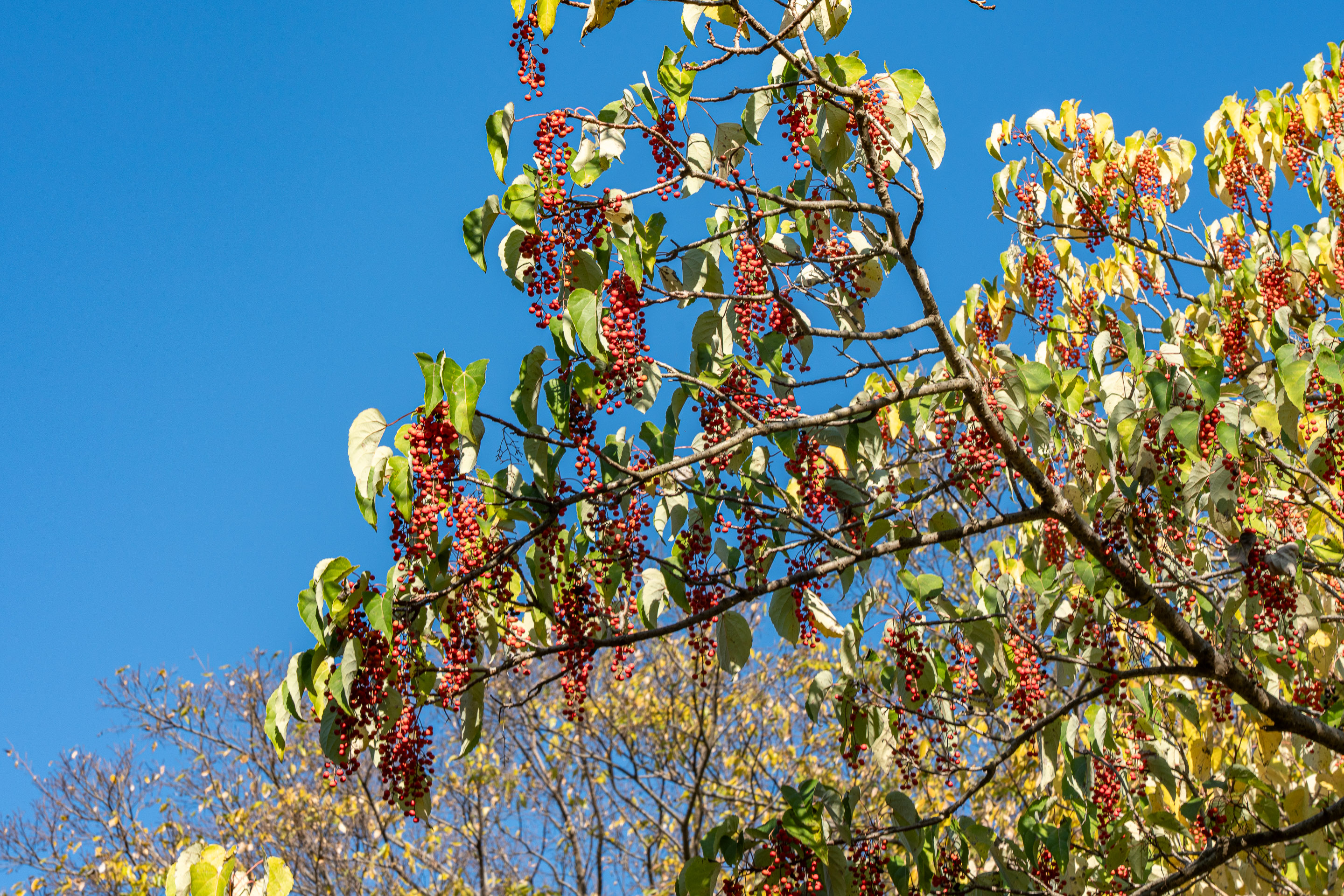 ここでは鳥たちのエサになるイイギリの実が赤くなり始めた