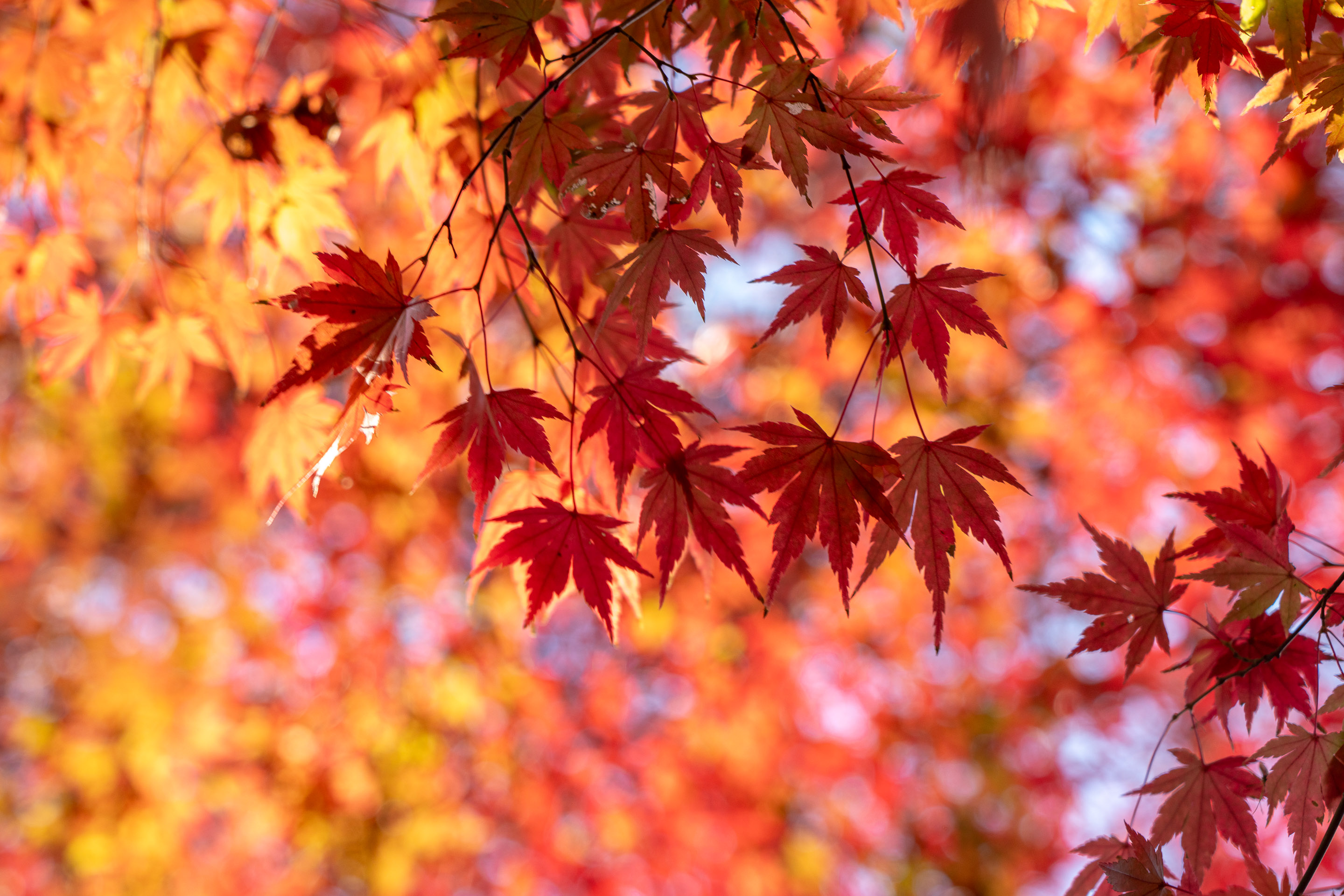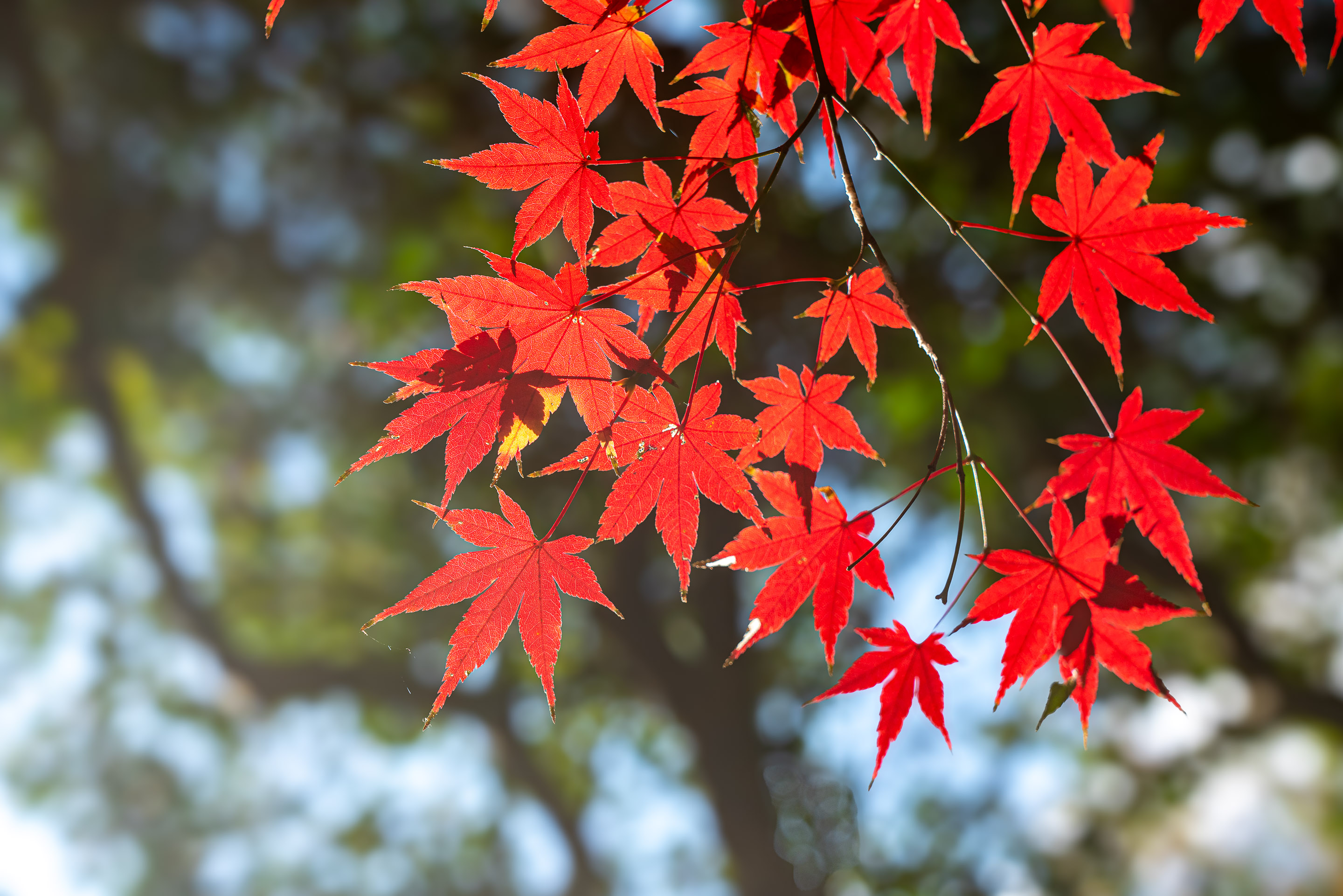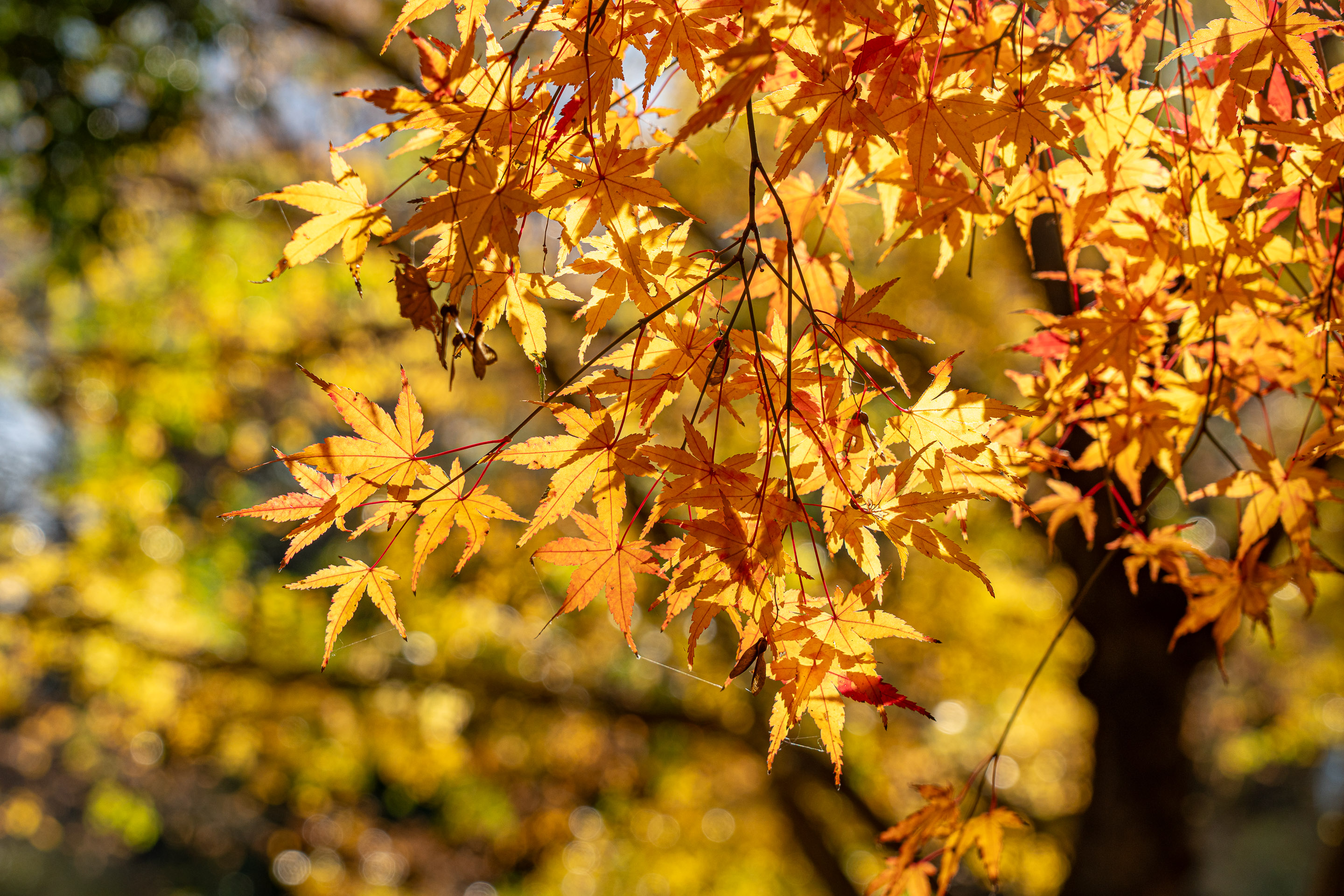 西日を浴びて輝くカエデがいい