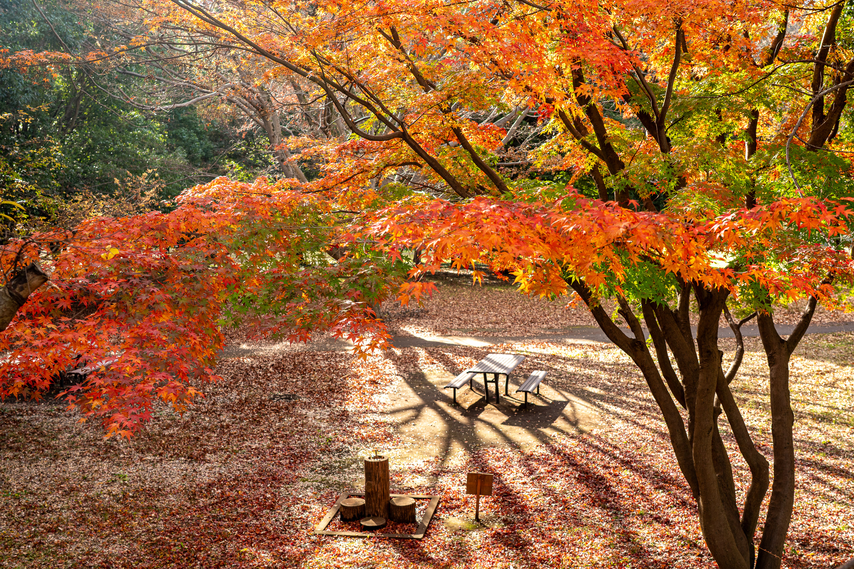 赤く染まっているのはこの公園は少ない