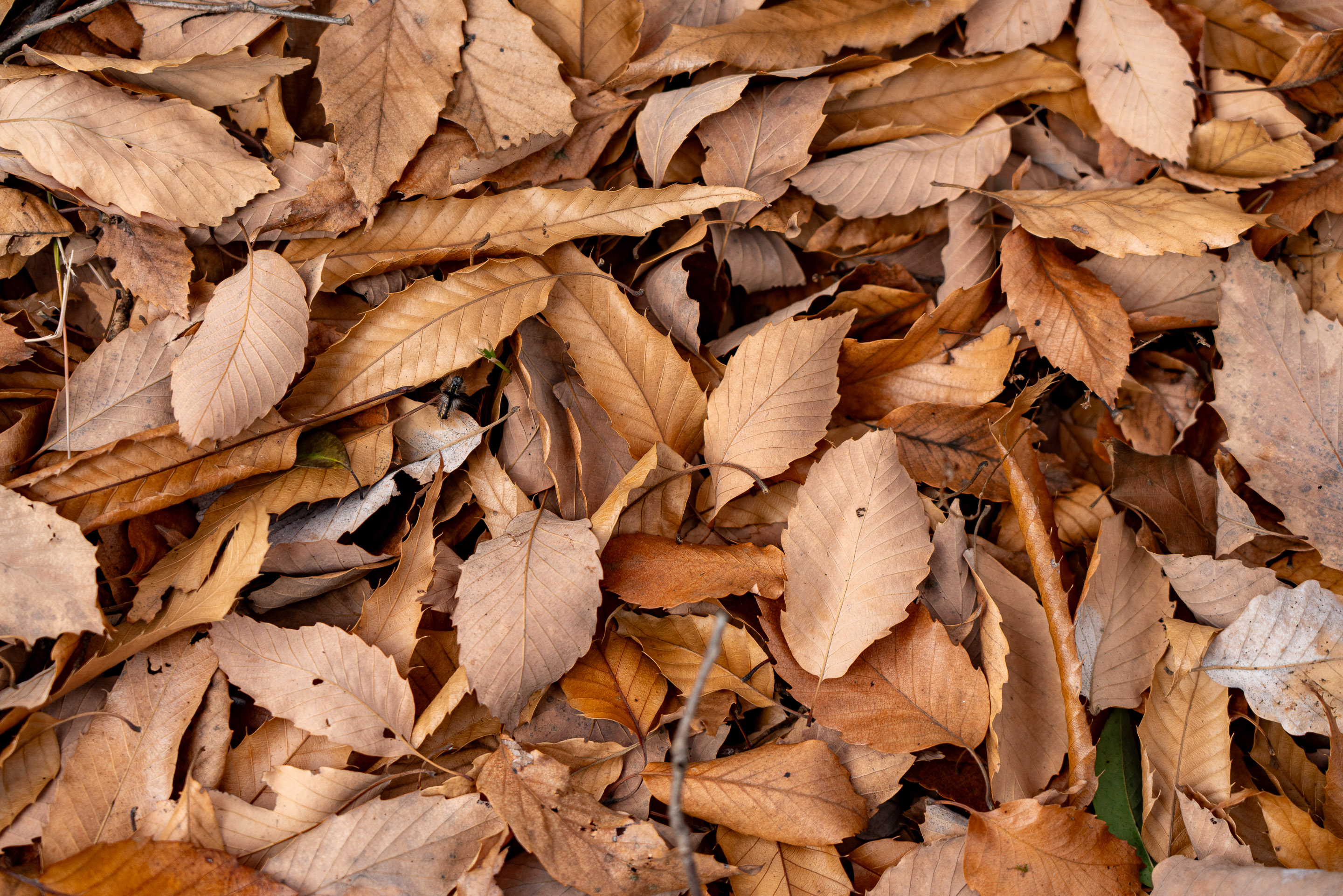 コナラの落ち葉が積み重なっている