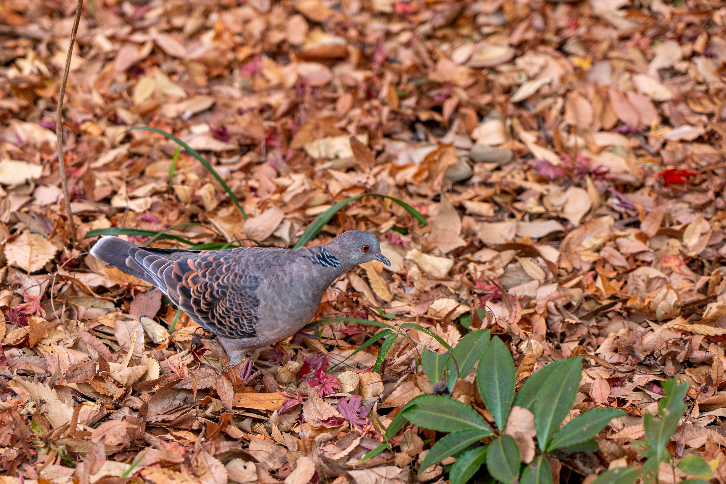 落ち葉の中、エサを探すキジバトも可愛い