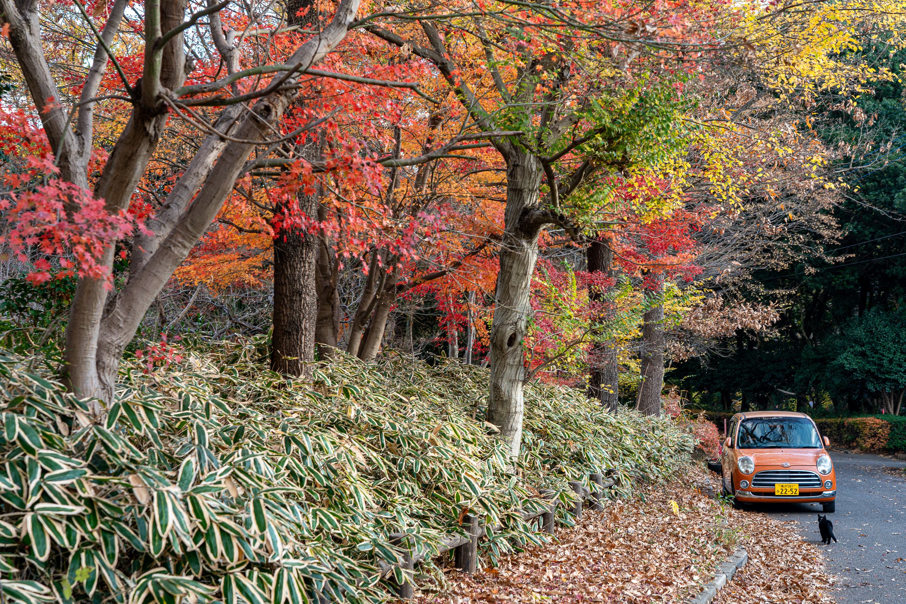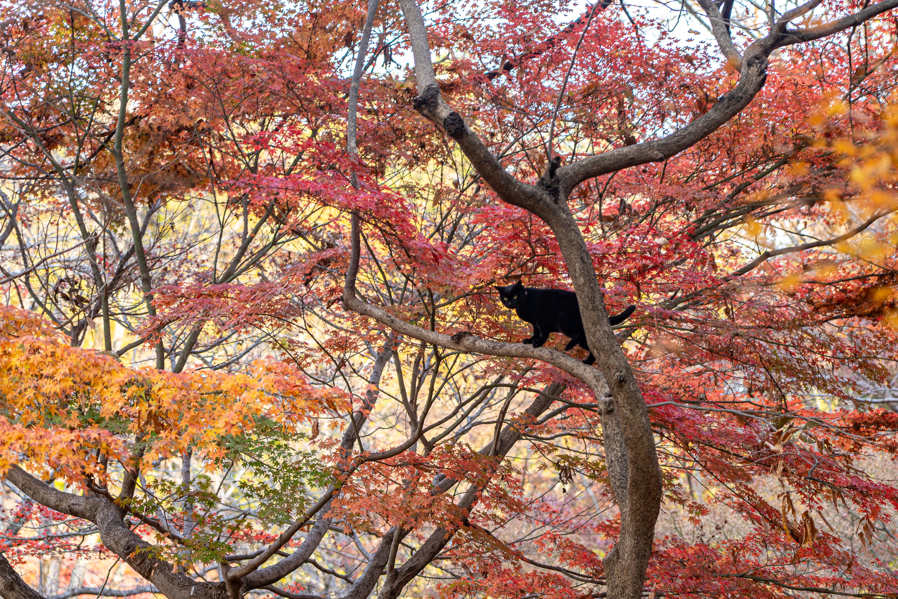 おまけの猫 先ほどの黒猫がカエデの木に登っていた 師走入り もみじ照らして 息を継ぎ 赤々と 燃え萌えいづる 師走午後