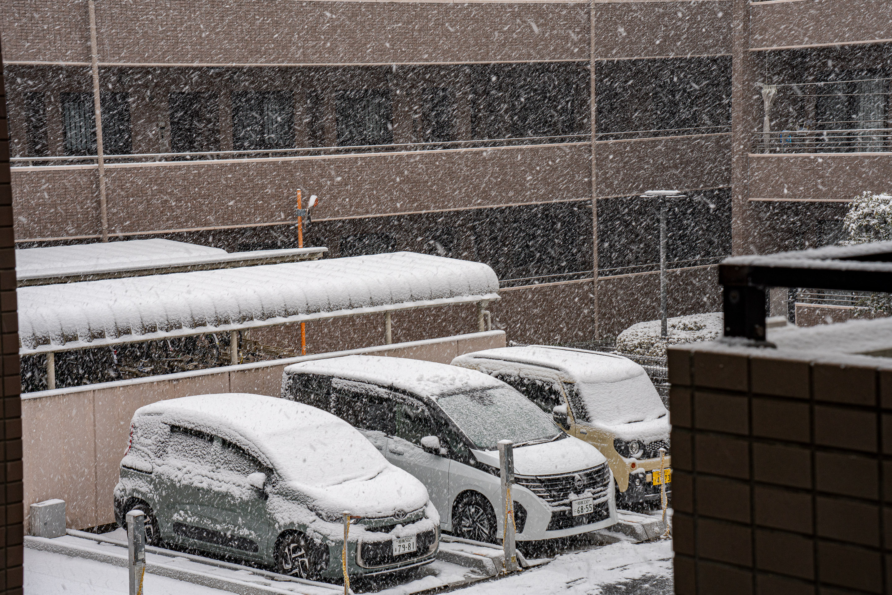 となりのマンションの駐車場も降り積もっている