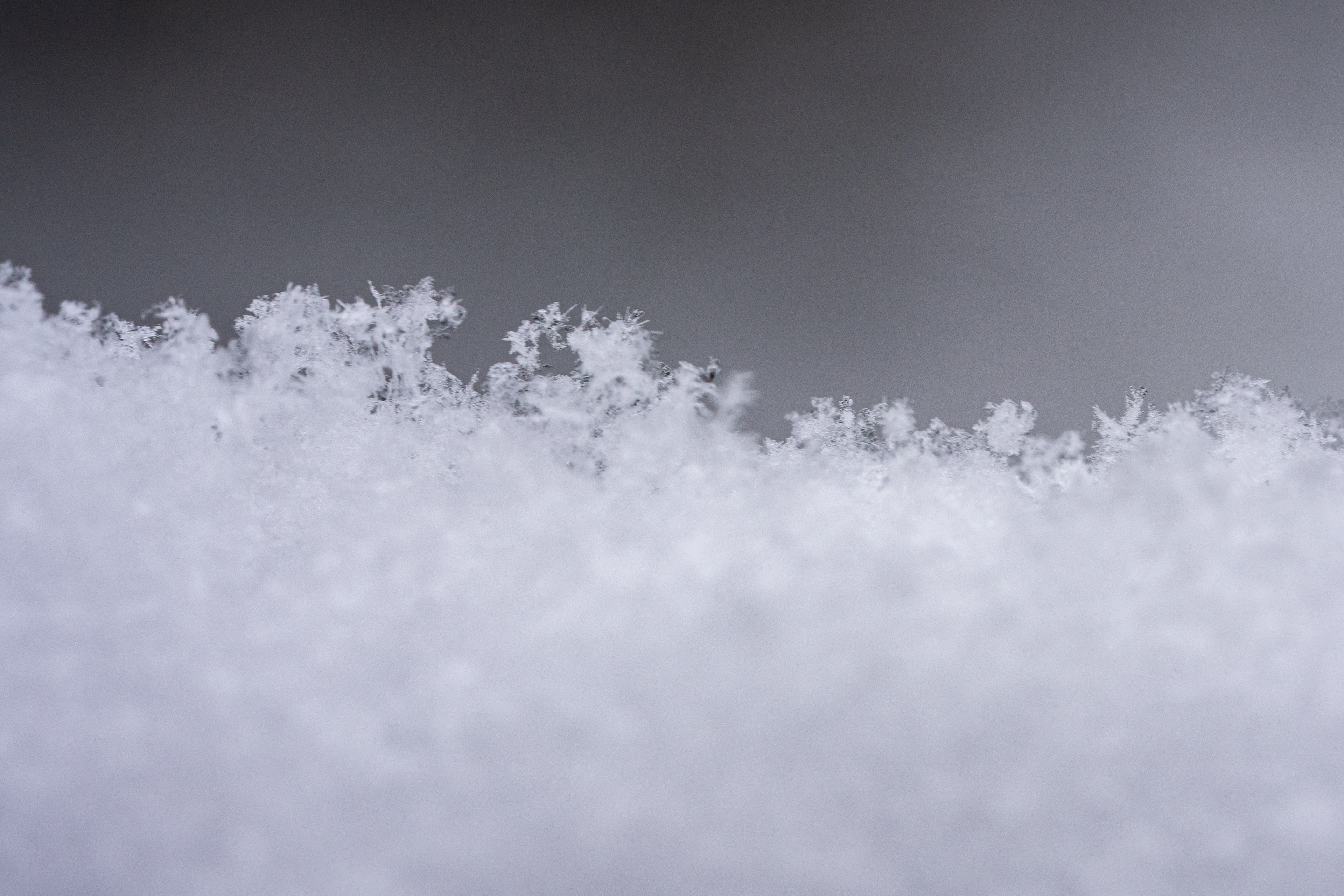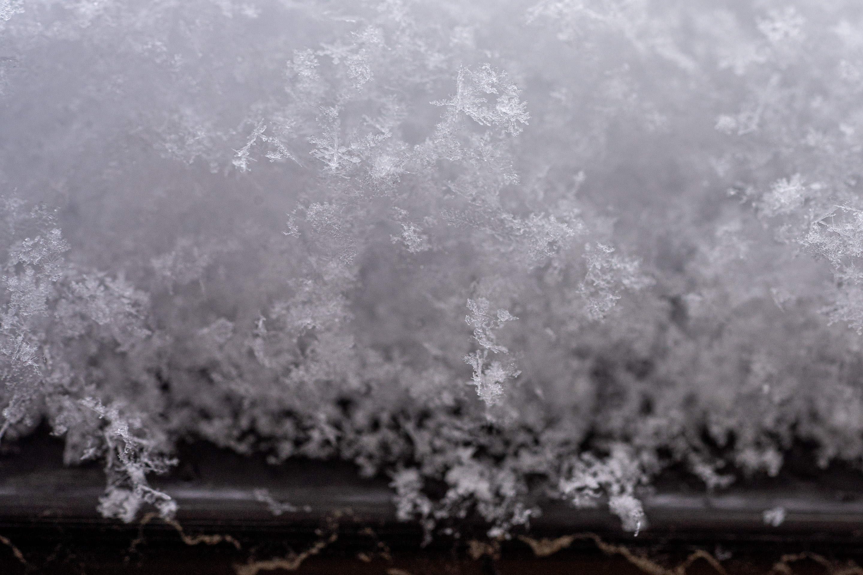 ベランダに出て積もっている雪をマクロで撮った