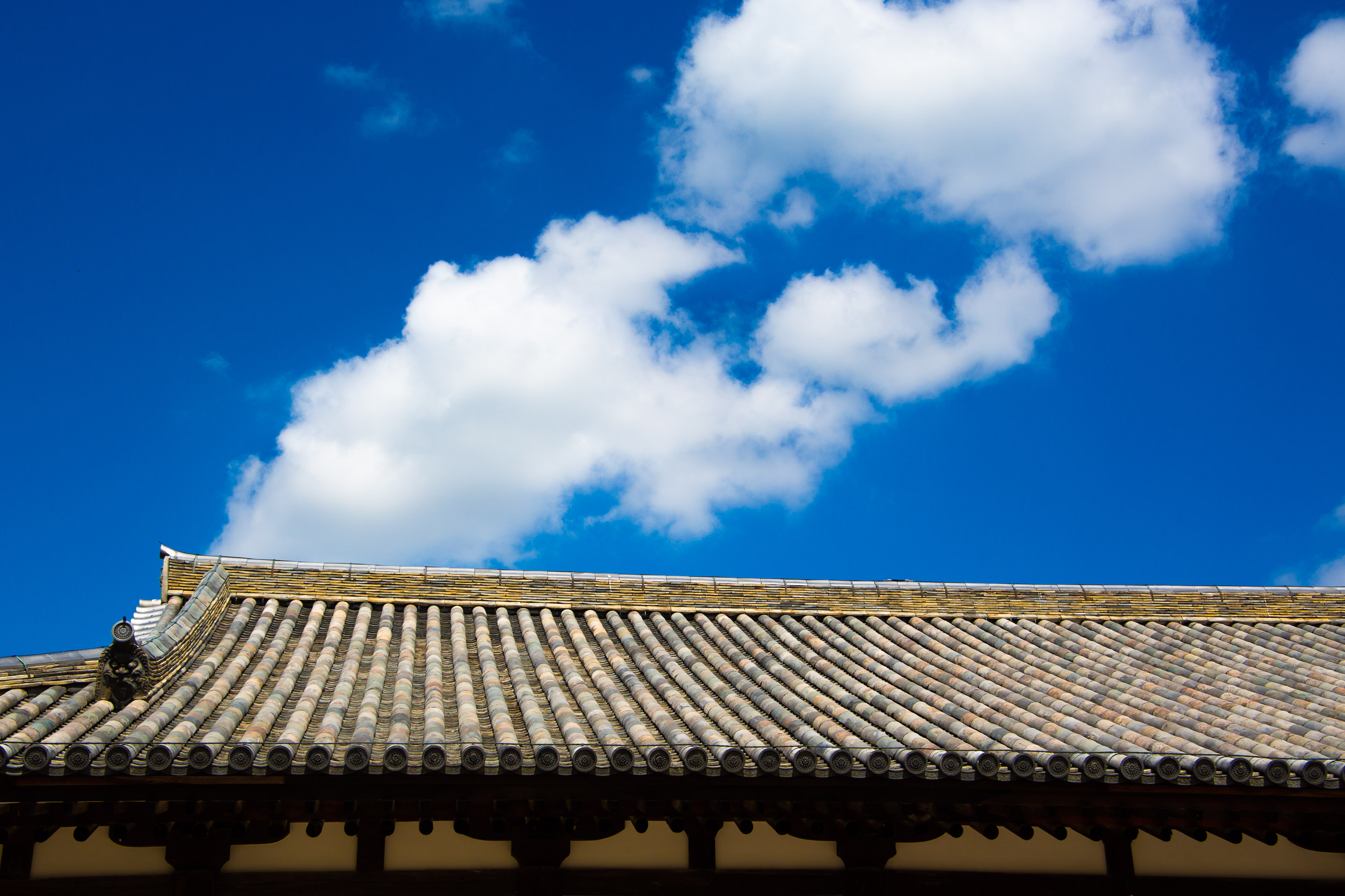 春日大社から新薬師寺に向かった。十二神将像で知られるお寺だ。本堂内では椅子に座ってじっくりと像を眺めることができる。天平の甍の上には秋らしい空が広がっていた。