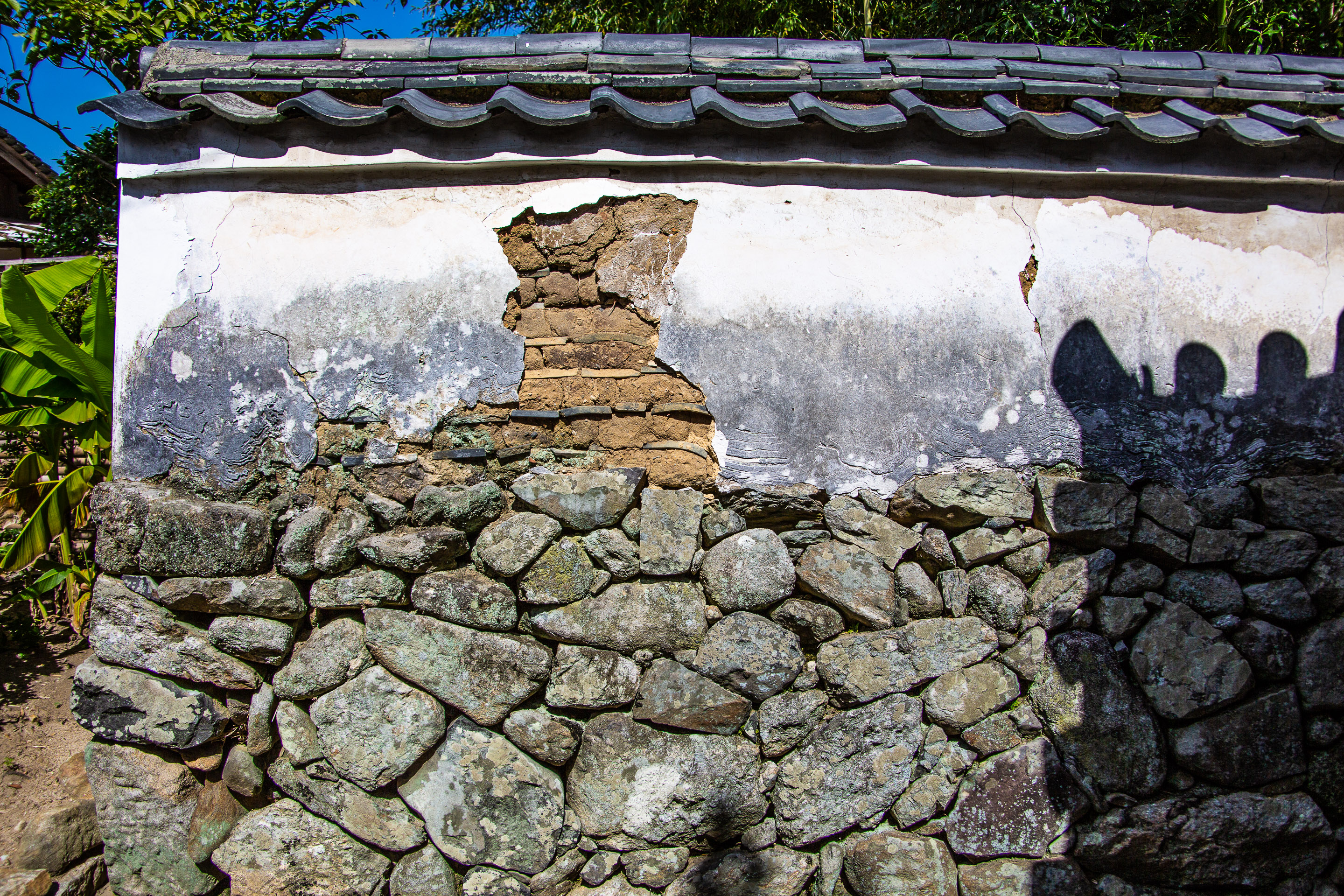 この新薬師寺にある築地塀は、石垣の上に載せてあり、かなり堅牢そうでりっぱである。とにかく塀が美しい。